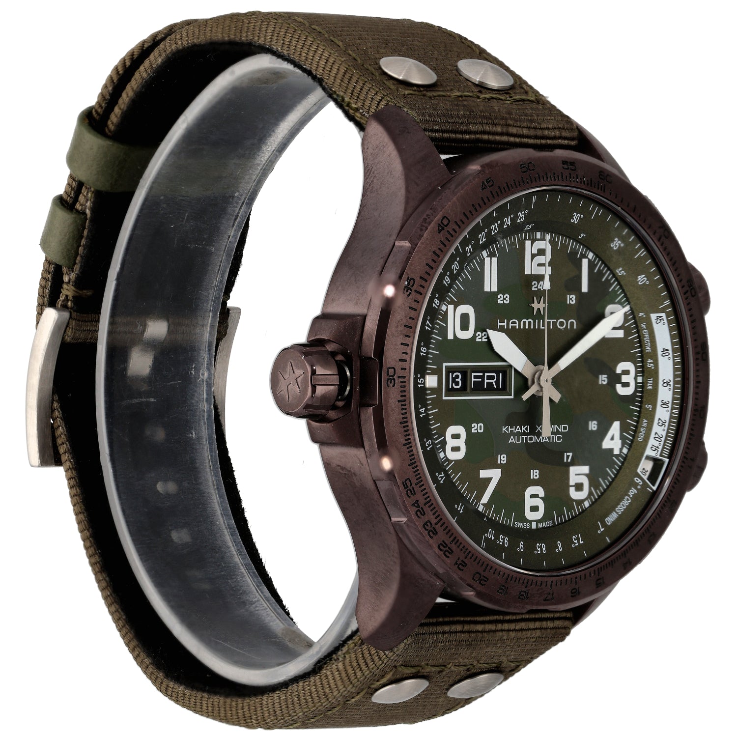 This stunning, pre-owned men's Hamilton Khaki Aviation X-Wind watch features an adjustable fabric bracelet and a 45mm case. Buying from us is quick and easy, See View-in-Store to find out more on viewing items in one of our 280+ stores nationwide. This watch is also covered by our 12 month warranty and 30 days return policy.