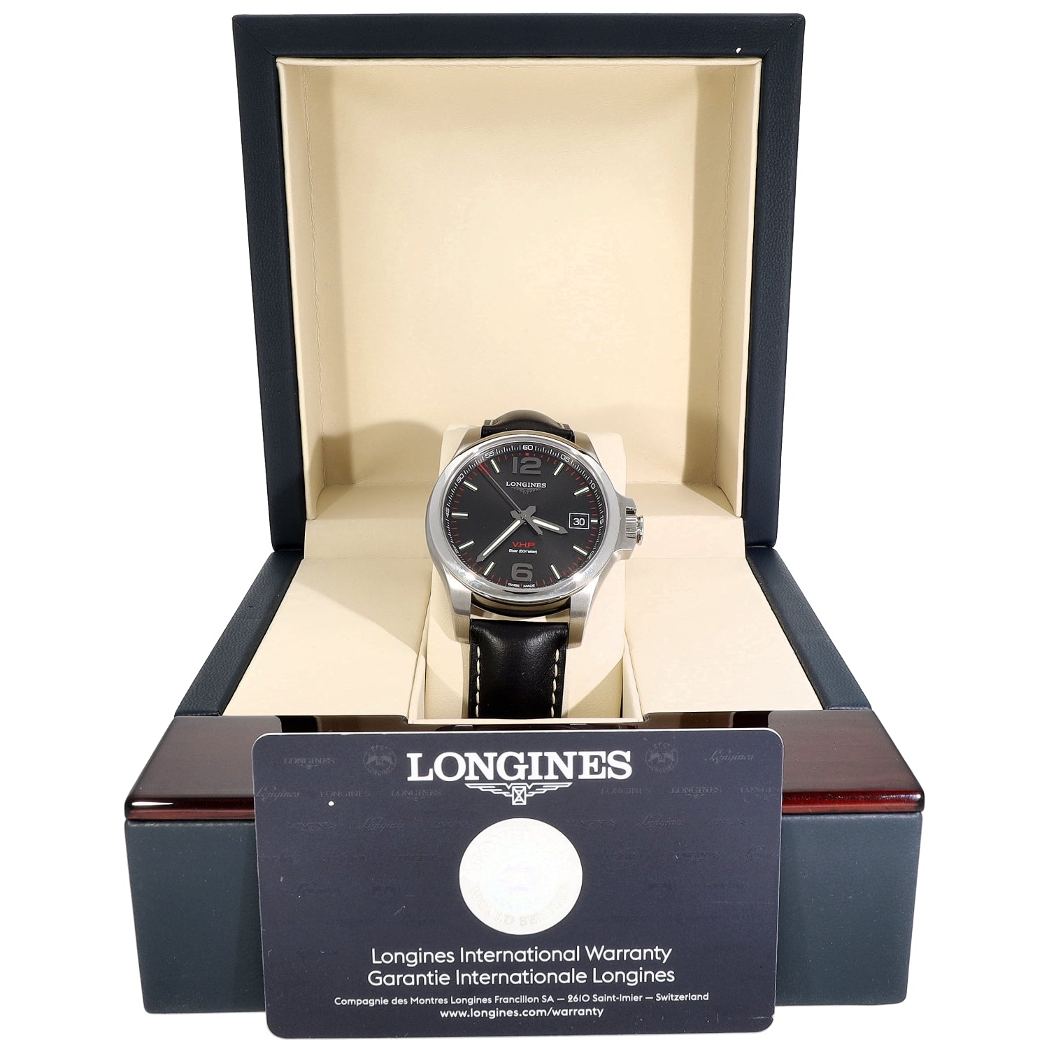 This stunning, pre-owned men's Longines Conquest watch features an adjustable leather bracelet and a 41mm case. Buying from us is quick and easy, See View-in-Store to find out more on viewing items in one of our 280+ stores nationwide. This watch is also covered by our 12 month warranty and 30 days return policy.