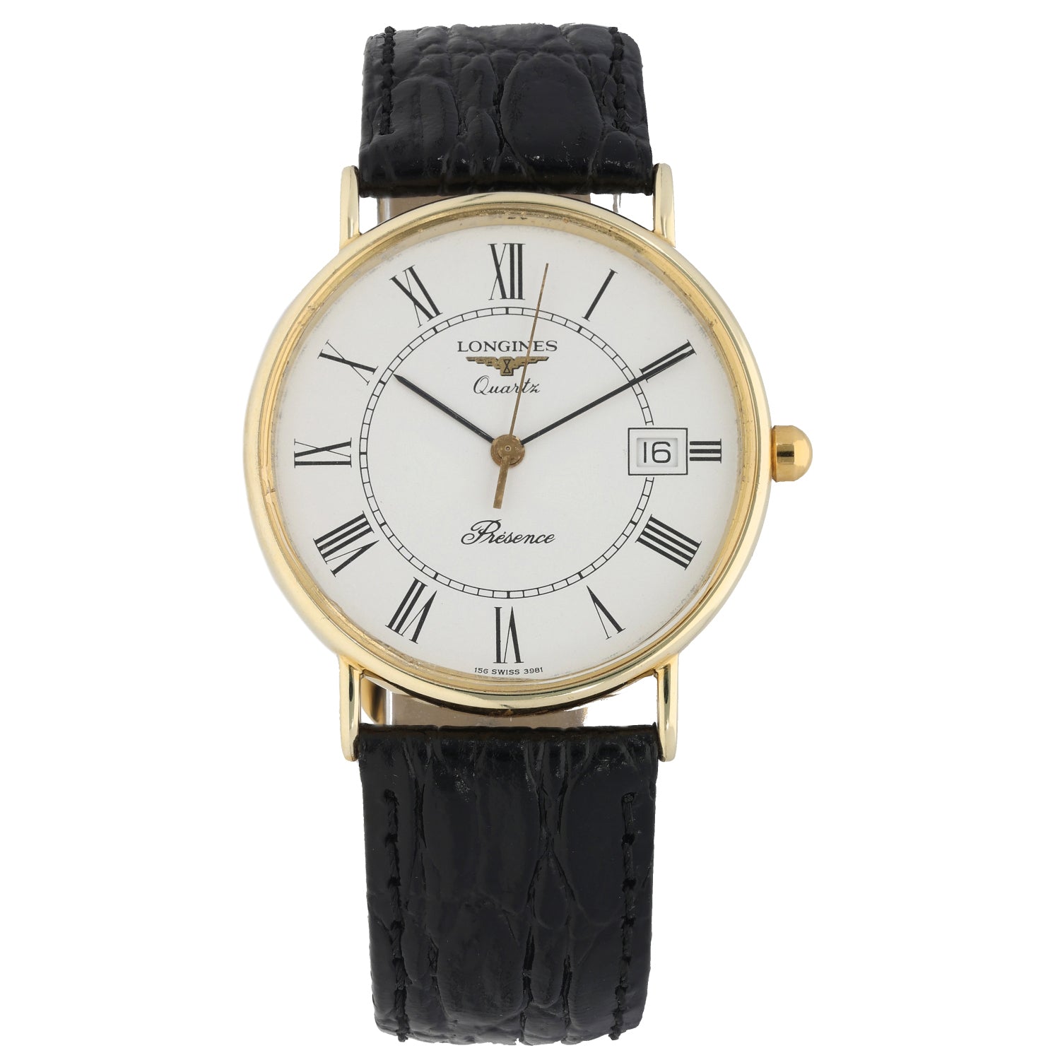 This stunning, pre-owned men's Longines Presence watch features an adjustable leather bracelet and a 32mm case. Buying from us is quick and easy, See View-in-Store to find out more on viewing items in one of our 280+ stores nationwide. This...