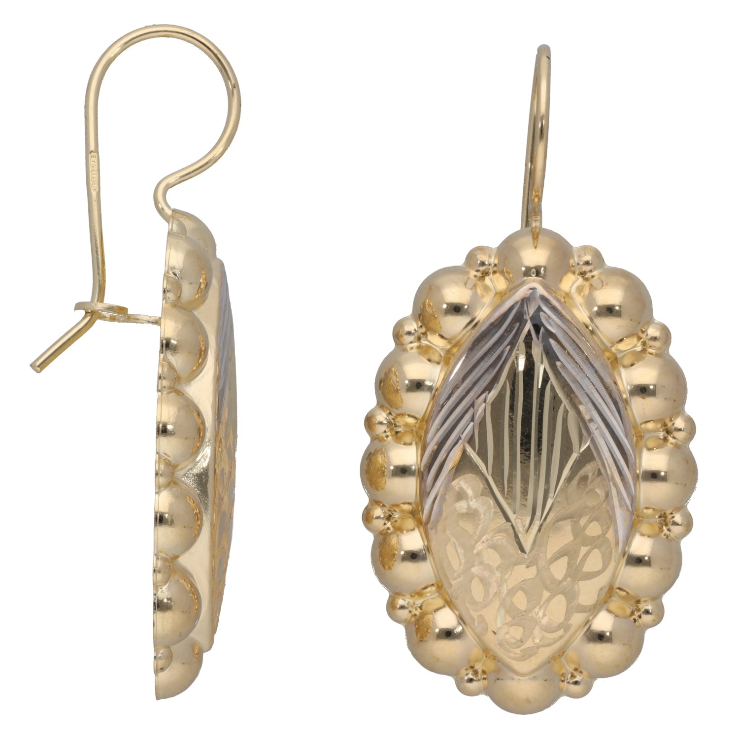 New 14ct Bi-Colour Gold Patterned Drop Earrings