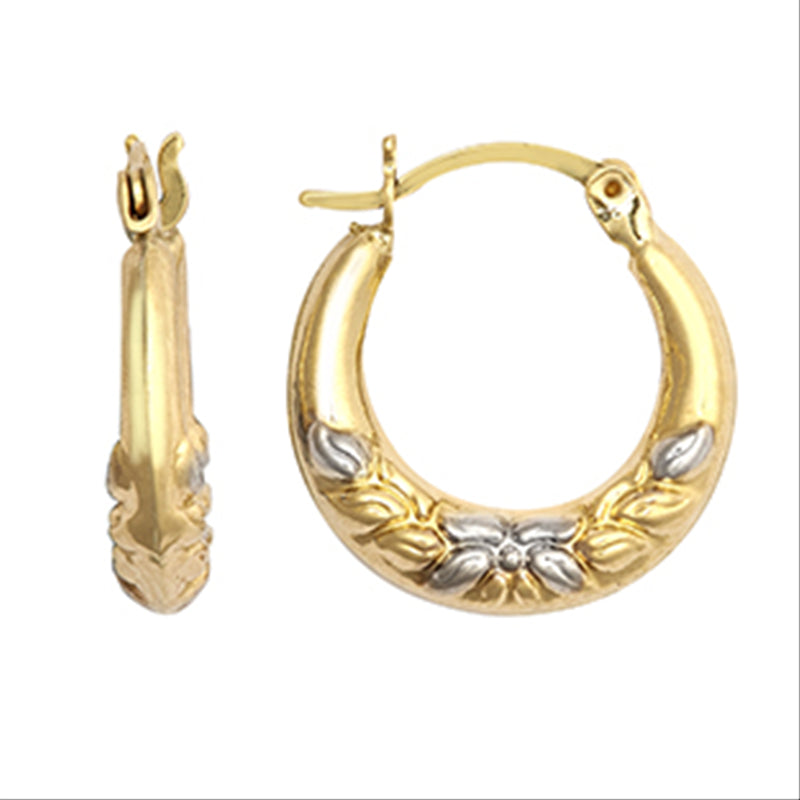 New 9ct Bi-Colour Gold Fancy Creole Earrings