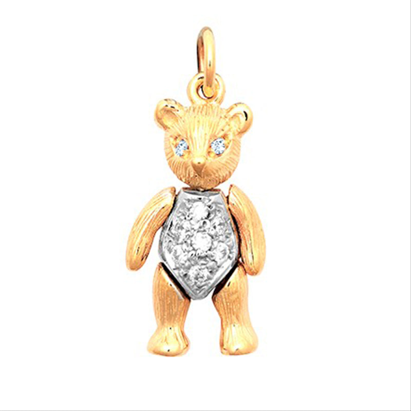 New 9ct Gold Cubic Zirconia Moveable Teddy Bear Pendant 20mm