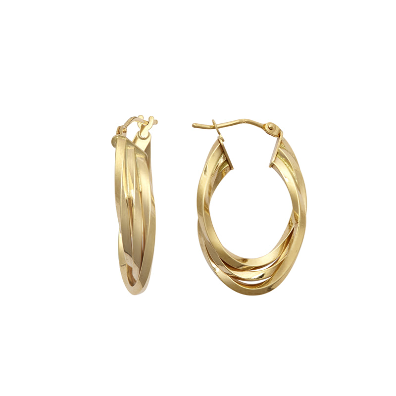 New 9ct Gold Three Layer Polished Oval Hoop Earrings