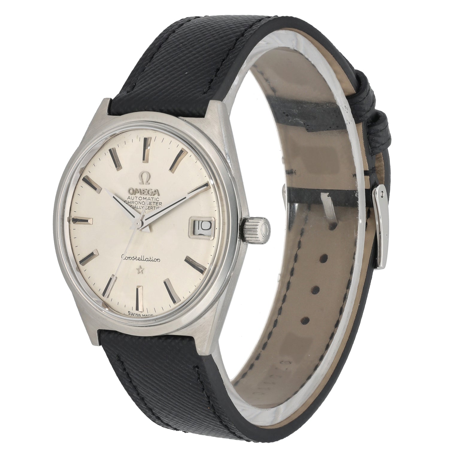 The Omega Constellation is an intricate timepiece which was launched by Omega back in 1952, being a perfect addition to any watch collection. This pre-owned example is finished with a cream dial inside a 36mm stainless steel case, which is fitted on an adjustable leather bracelet. The watch is also powered by a Quartz movement and is not water resistant.