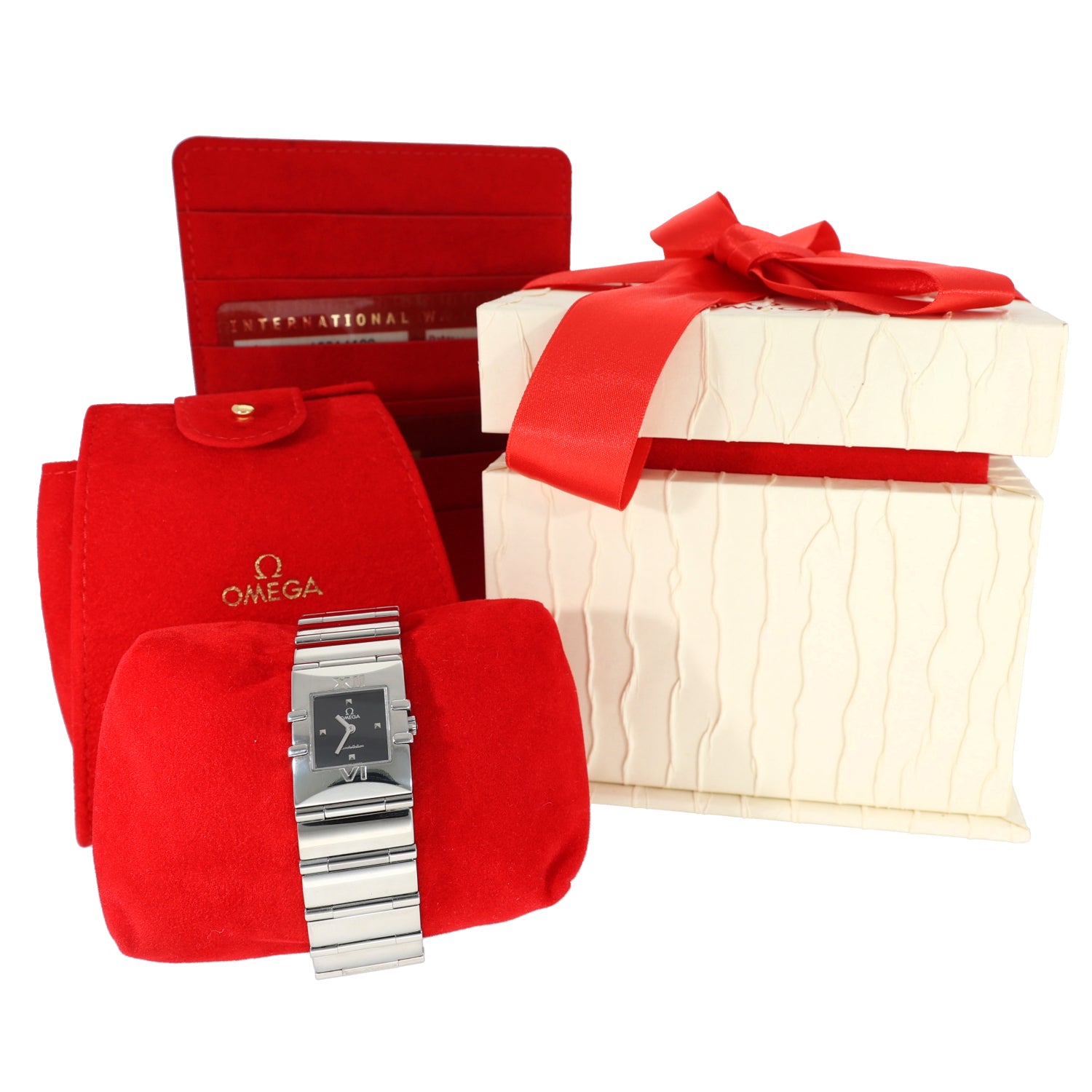The Omega Constellation is an intricate timepiece which was launched by Omega back in 1952, being a perfect addition to any watch collection. This pre-owned example is finished with a black dial inside a 19.3mm stainless steel case, which is fitted on a 15.5cm stainless steel bracelet. The watch is also powered by a Quartz movement and is water resistant up to 30 metres.