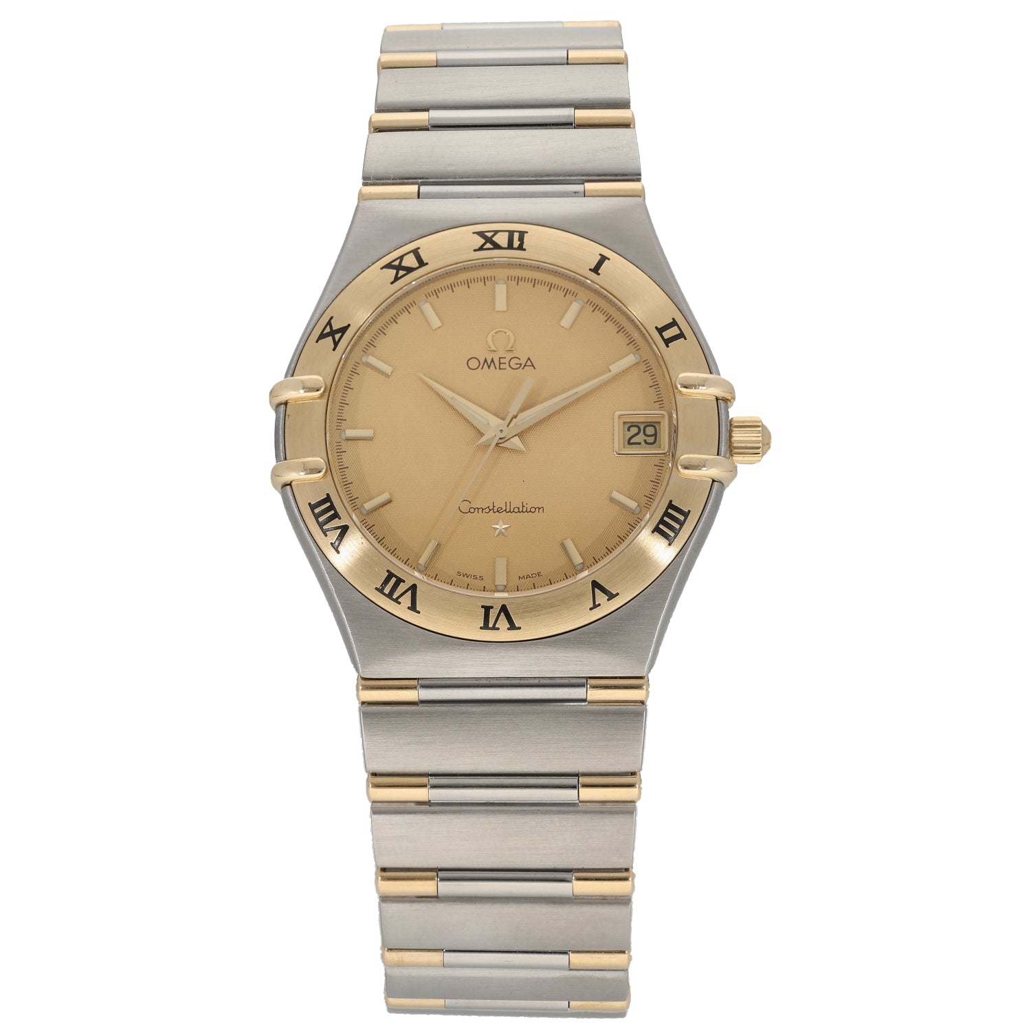 The Omega Constellation is an intricate timepiece which was launched by Omega back in 1952, being a perfect addition to any watch collection. This pre-owned example is finished with a champagne dial inside a 33mm bi-colour case, which is fitted on a 19cm bi-colour bracelet. The watch is also powered by a Quartz movement and is not water resistant.