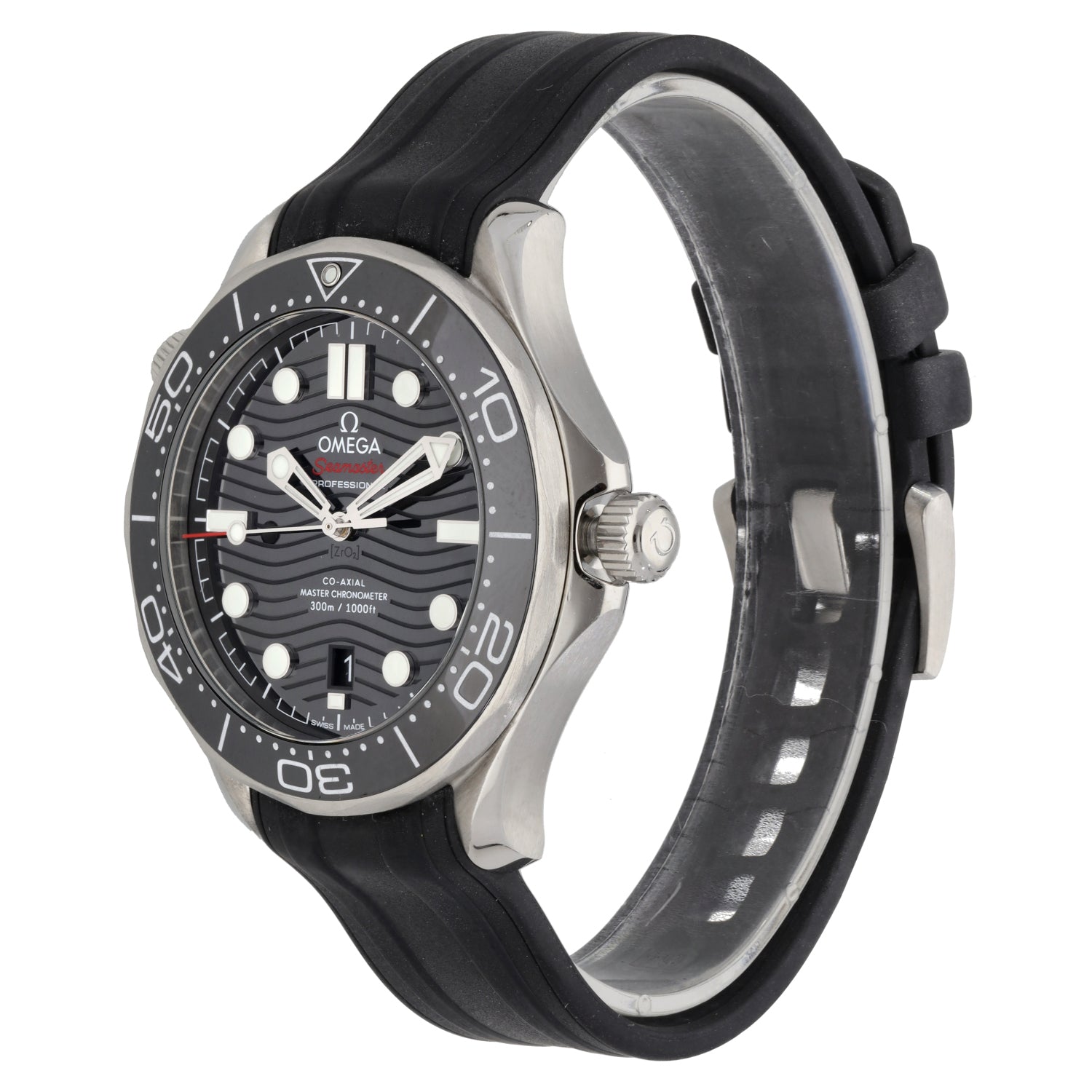 The Omega Seamaster is an intricate timepiece which was launched by Omega back in 1948, being a perfect addition to any watch collection. This pre-owned example is finished with a black dial inside a 42mm stainless steel case, which is fitted on an adjustable rubber bracelet. The watch is also powered by an Automatic movement and is water resistant up to 300 metres.