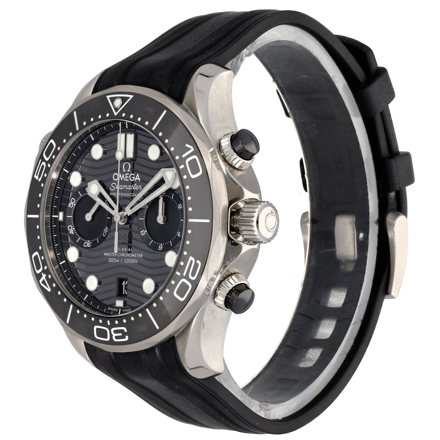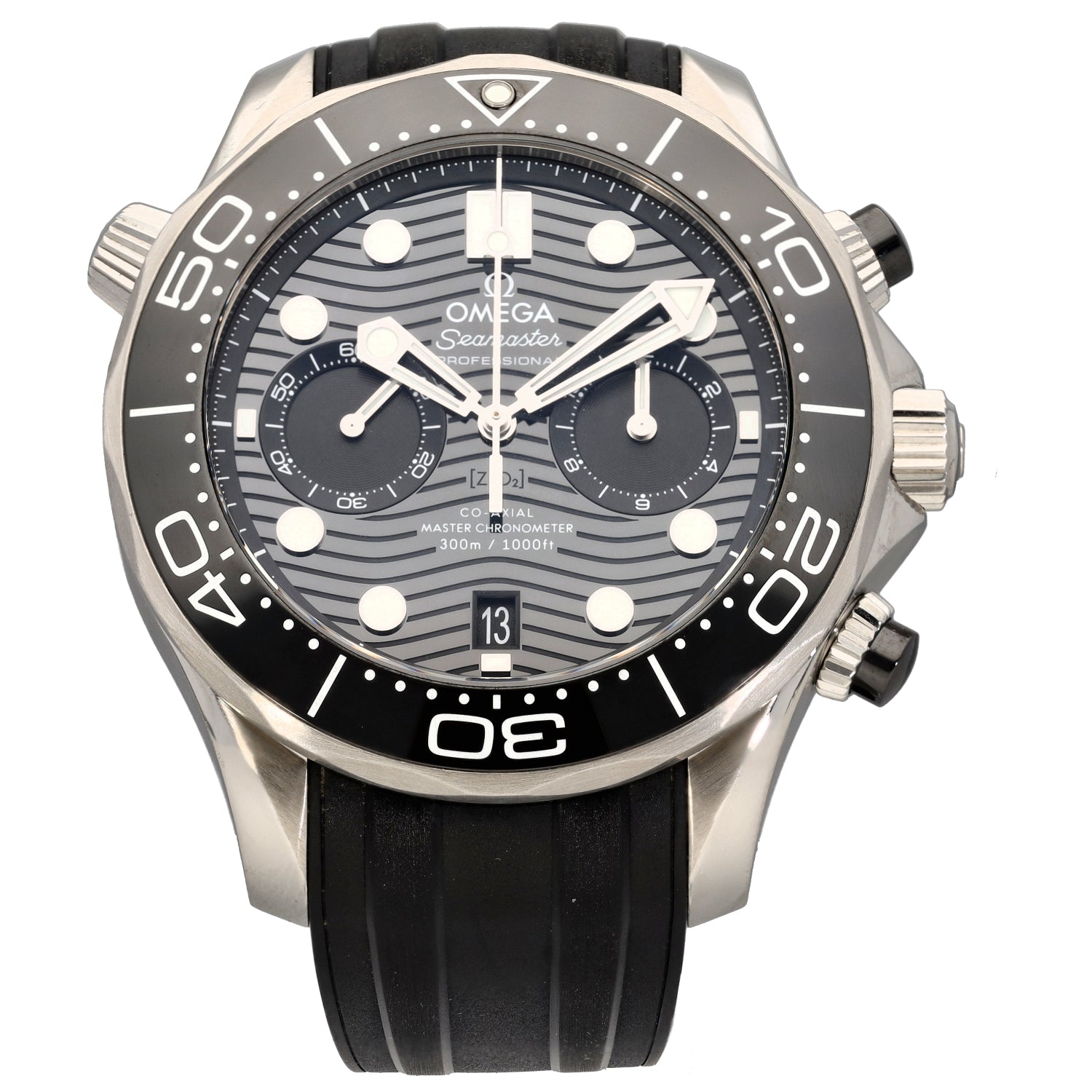 The Omega Seamaster is an intricate timepiece which was launched by Omega back in 1948, being a perfect addition to any watch collection. This pre-owned example is finished with a black dial inside a 44mm stainless steel case, which is fitted on an adjustable rubber bracelet. The watch is also powered by an Automatic movement and is water resistant up to 300 metres.