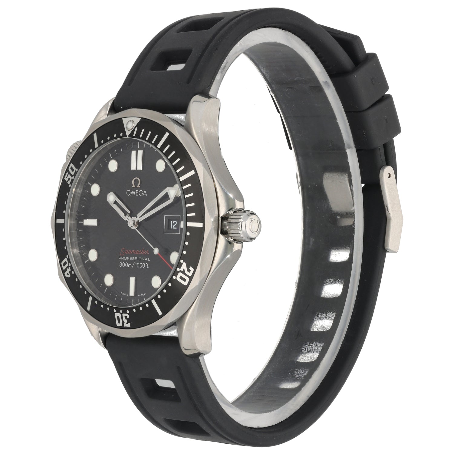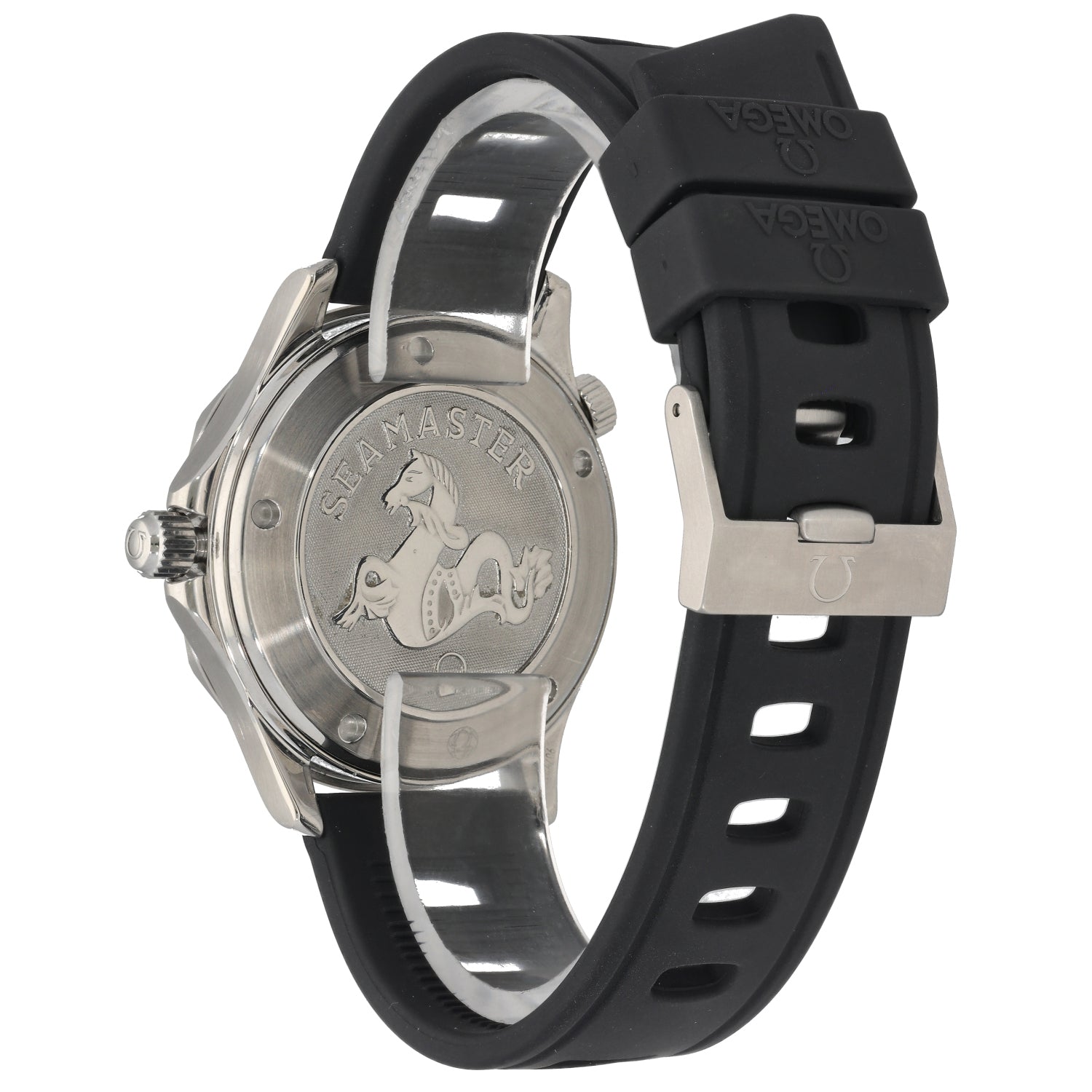 The Omega Seamaster is an intricate timepiece which was launched by Omega back in 1948, being a perfect addition to any watch collection. This pre-owned example is finished with a black dial inside a 41mm stainless steel case, which is fitted on an adjustable rubber bracelet. The watch is also powered by a Quartz movement and is water resistant up to 300 metres.