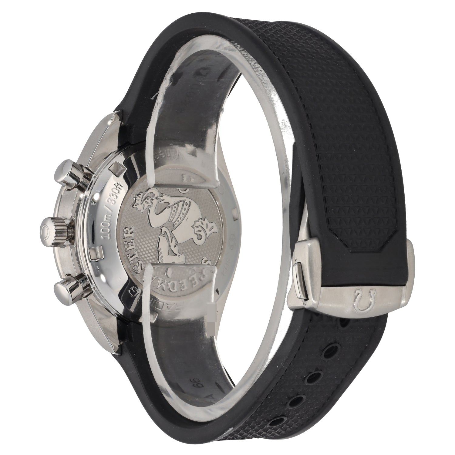 The Omega Speedmaster is an intricate timepiece which was launched by Omega back in 1957, being a perfect addition to any watch collection. This pre-owned example is finished with a black dial inside a 40mm stainless steel case, which is fitted on an adjustable rubber bracelet. The watch is also powered by an Automatic movement and is water resistant up to 100 metres.
