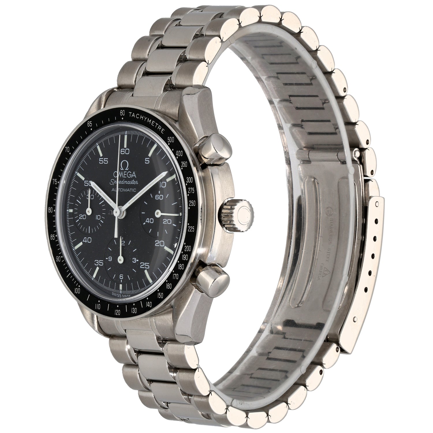 The Omega Speedmaster is an intricate timepiece which was launched by Omega back in 1957, being a perfect addition to any watch collection. This pre-owned example is finished with a black dial inside a 38mm stainless steel case, which is fitted on an 18.5cm stainless steel bracelet. The watch is also powered by an Automatic movement and is water resistant up to 50 metres.