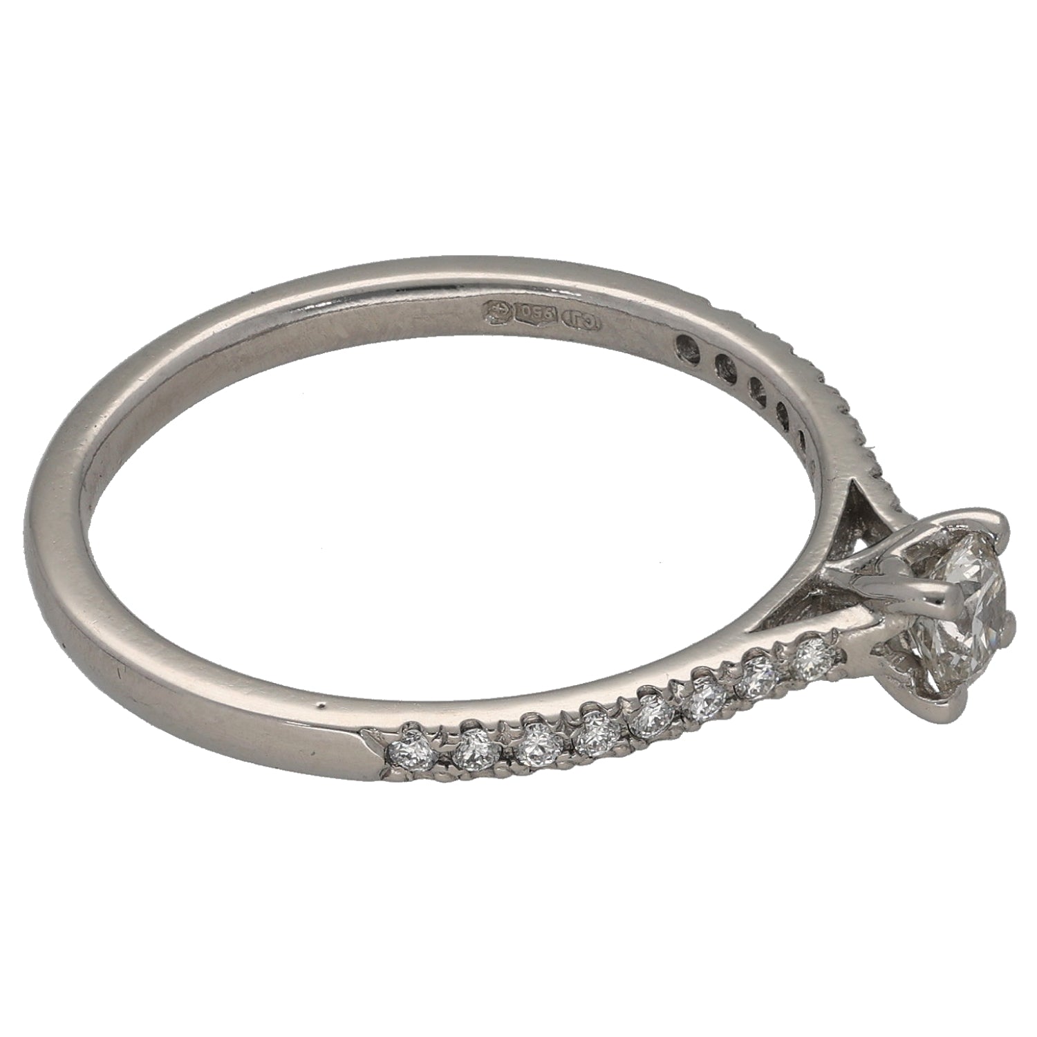 Platinum 0.43ct Diamond Solitaire Ring With Accent Stones Size Q