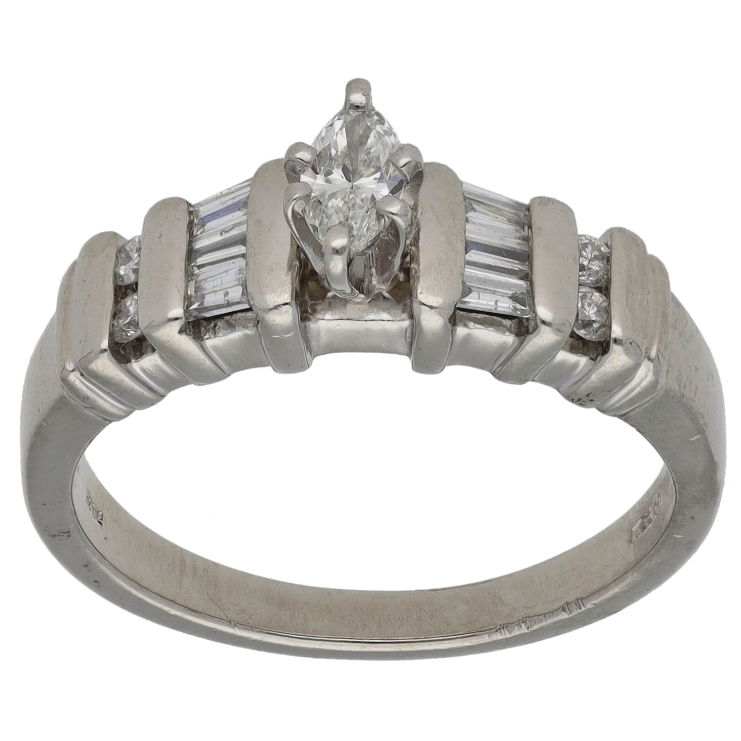 Platinum 0.58ct Diamond Solitaire Ring With Accent Stones Size N