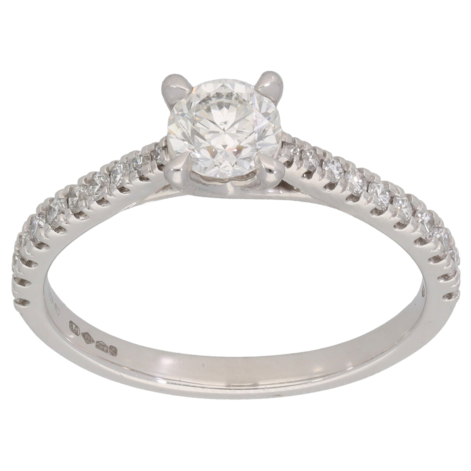 Platinum 1.00ct Diamond Solitaire Ring With Accent Stones Size S