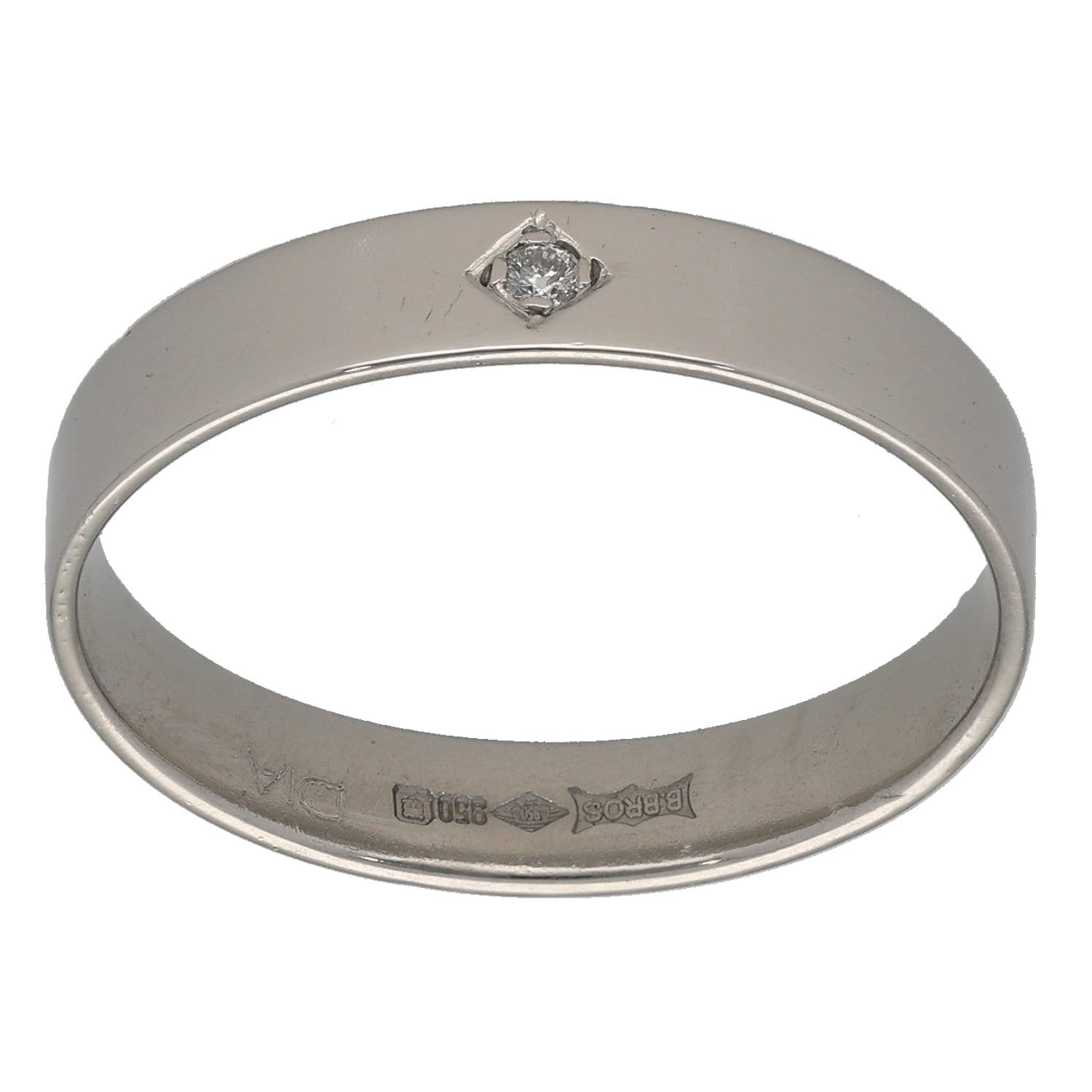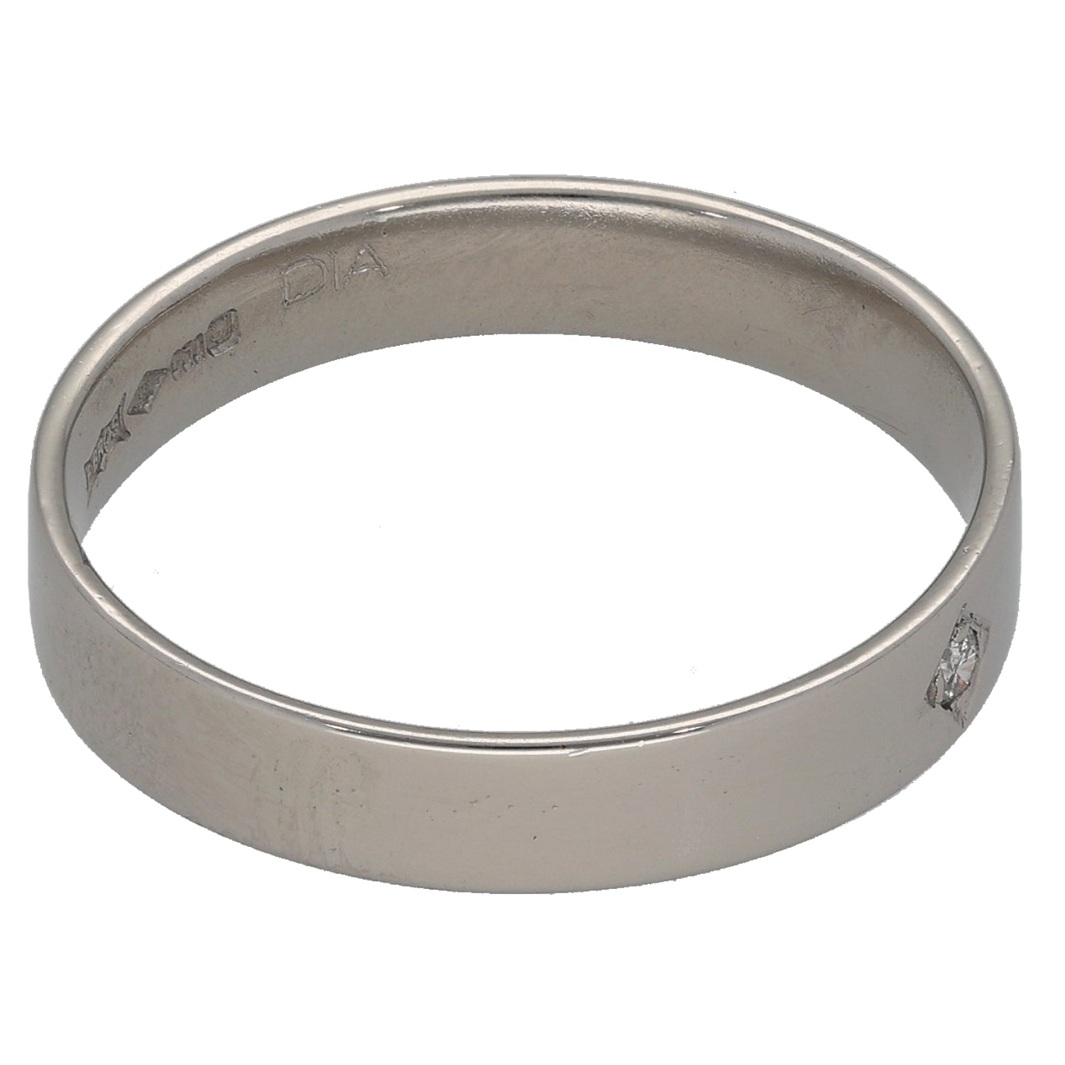 Platinum 0.02ct Diamond Plain Wedding Ring Size R