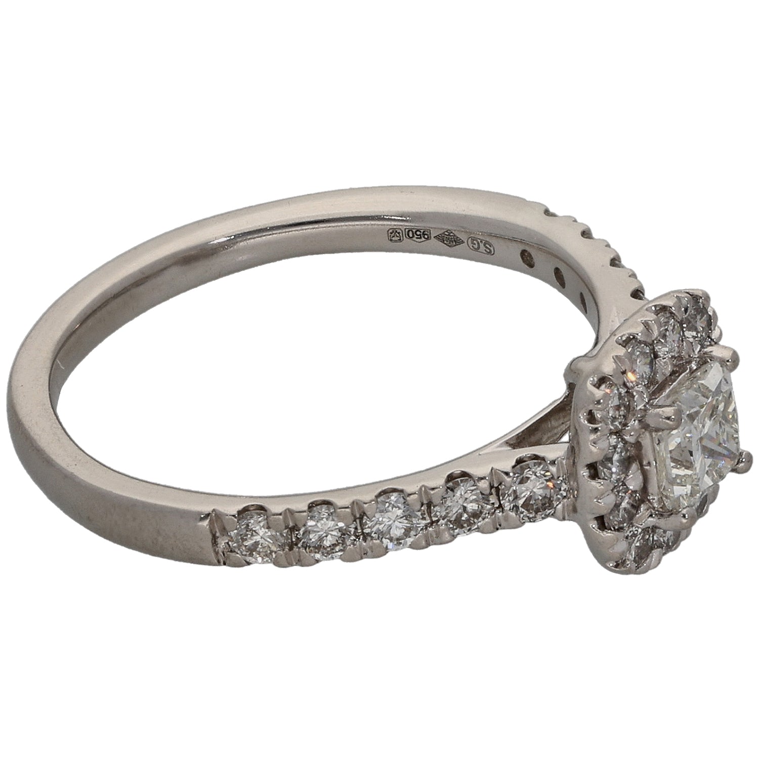 Platinum 1.00ct Diamond Halo Ring Size O