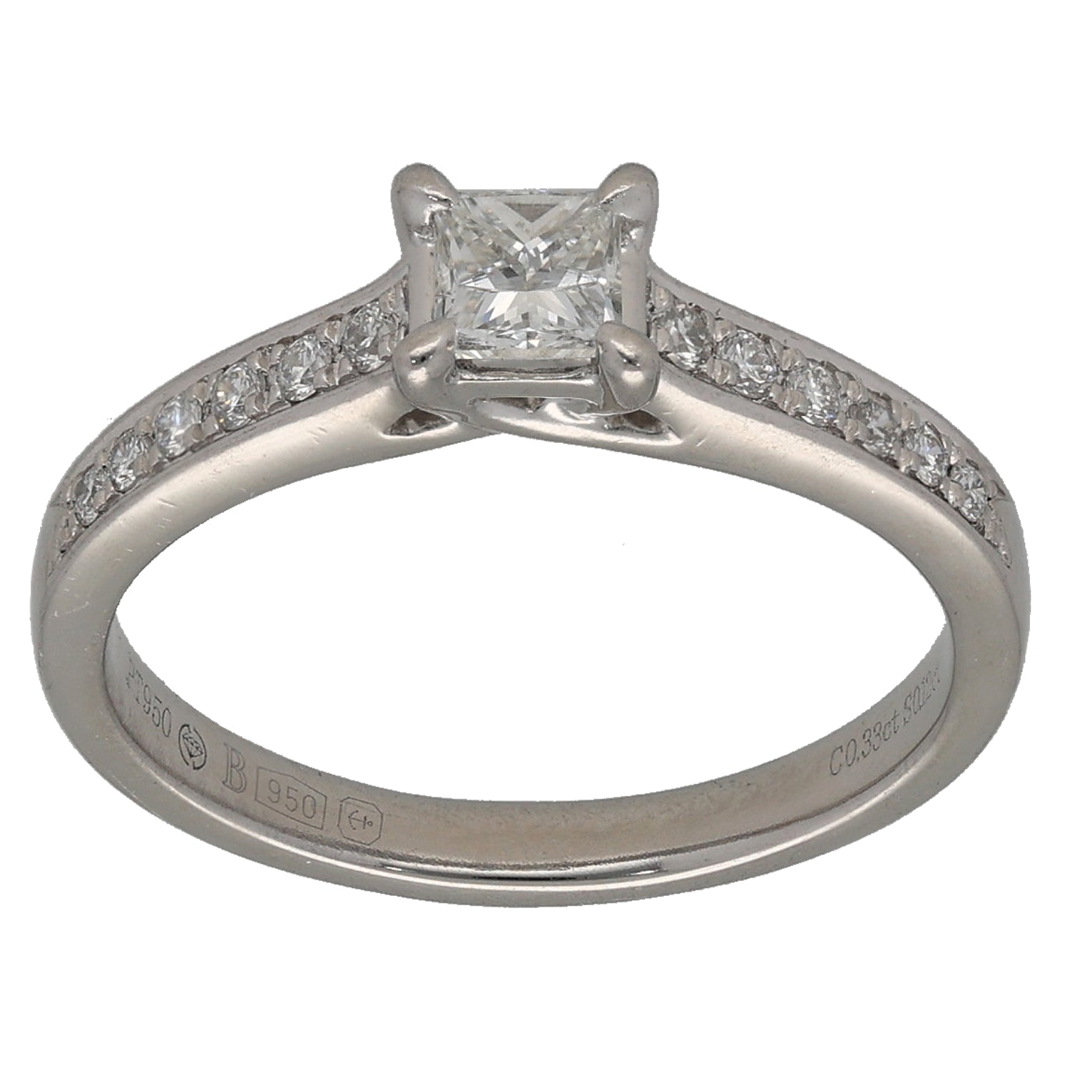 Platinum 0.45ct Diamond Solitaire Ring With Accent Stones Size K