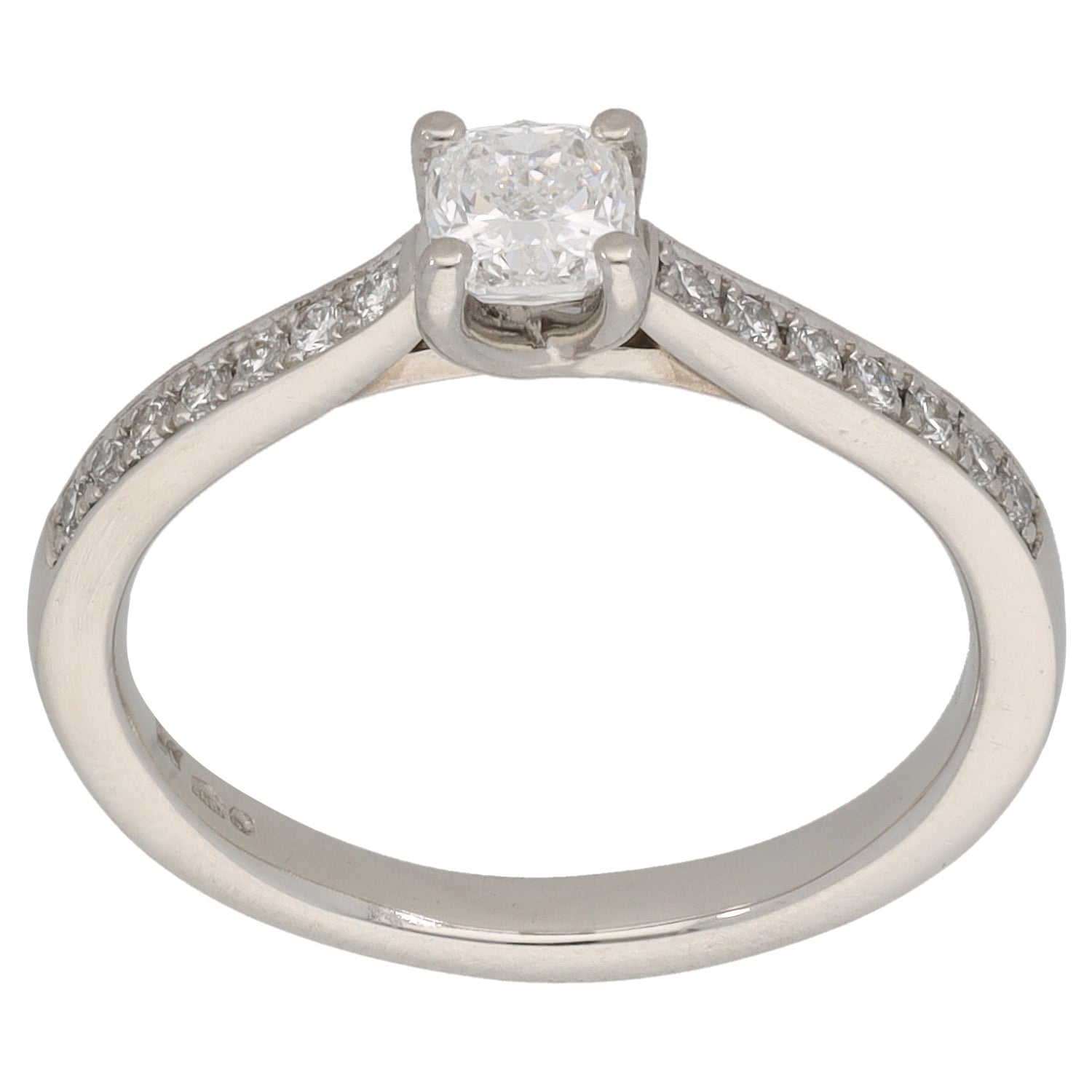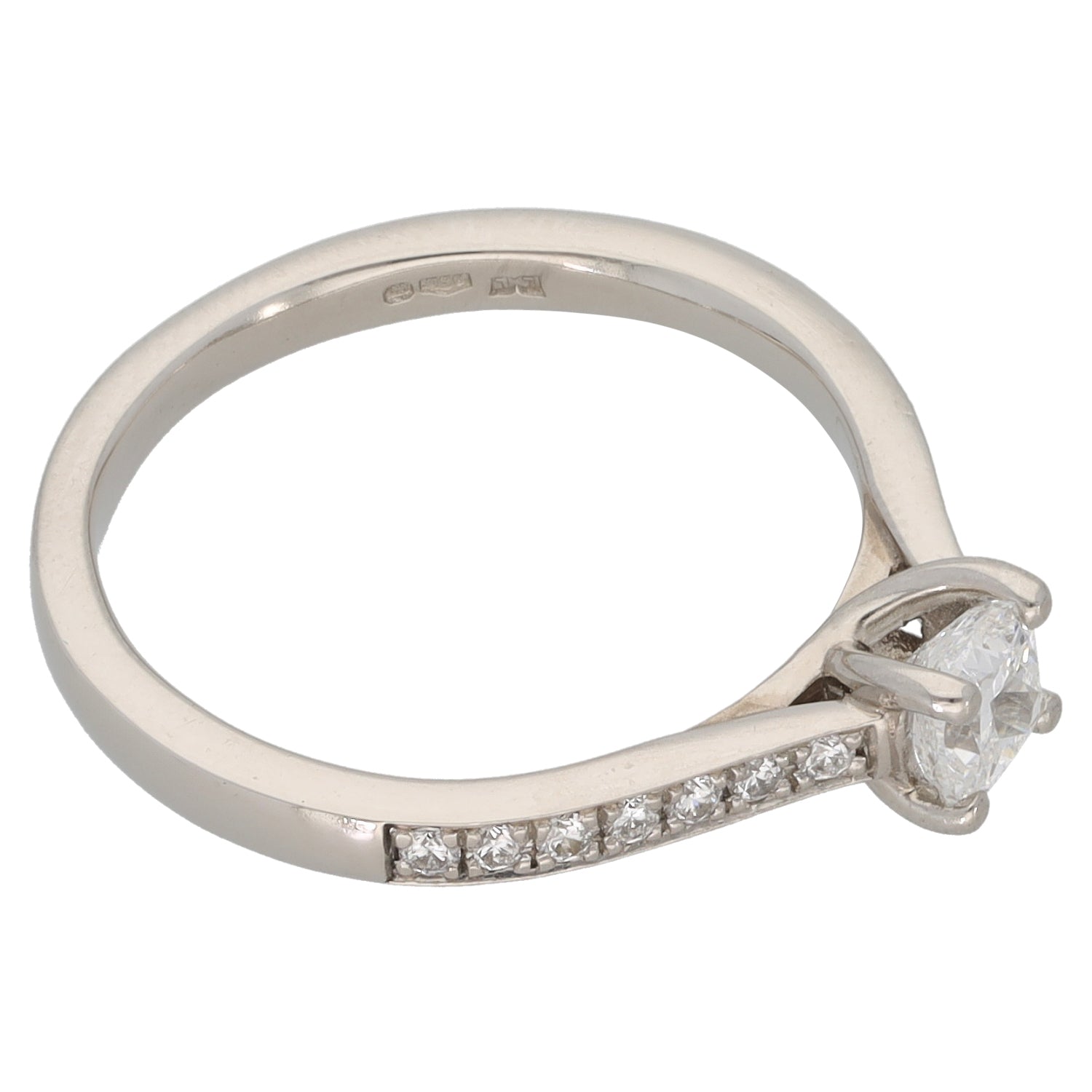 Platinum 0.54ct Diamond Solitaire Ring With Accent Stones Size M