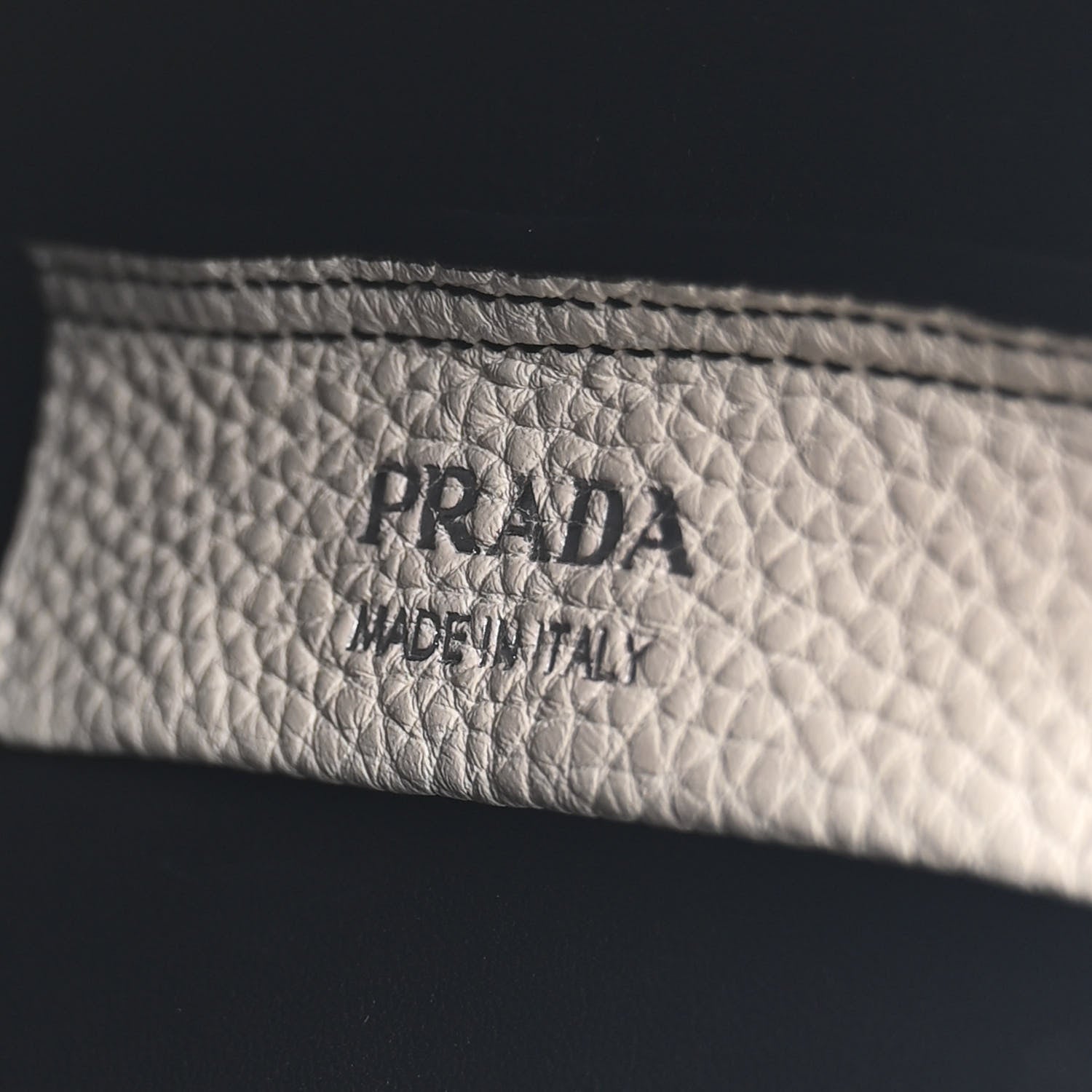 Prada Small Dynamique Tote Vitello Daino Leather Bag - White