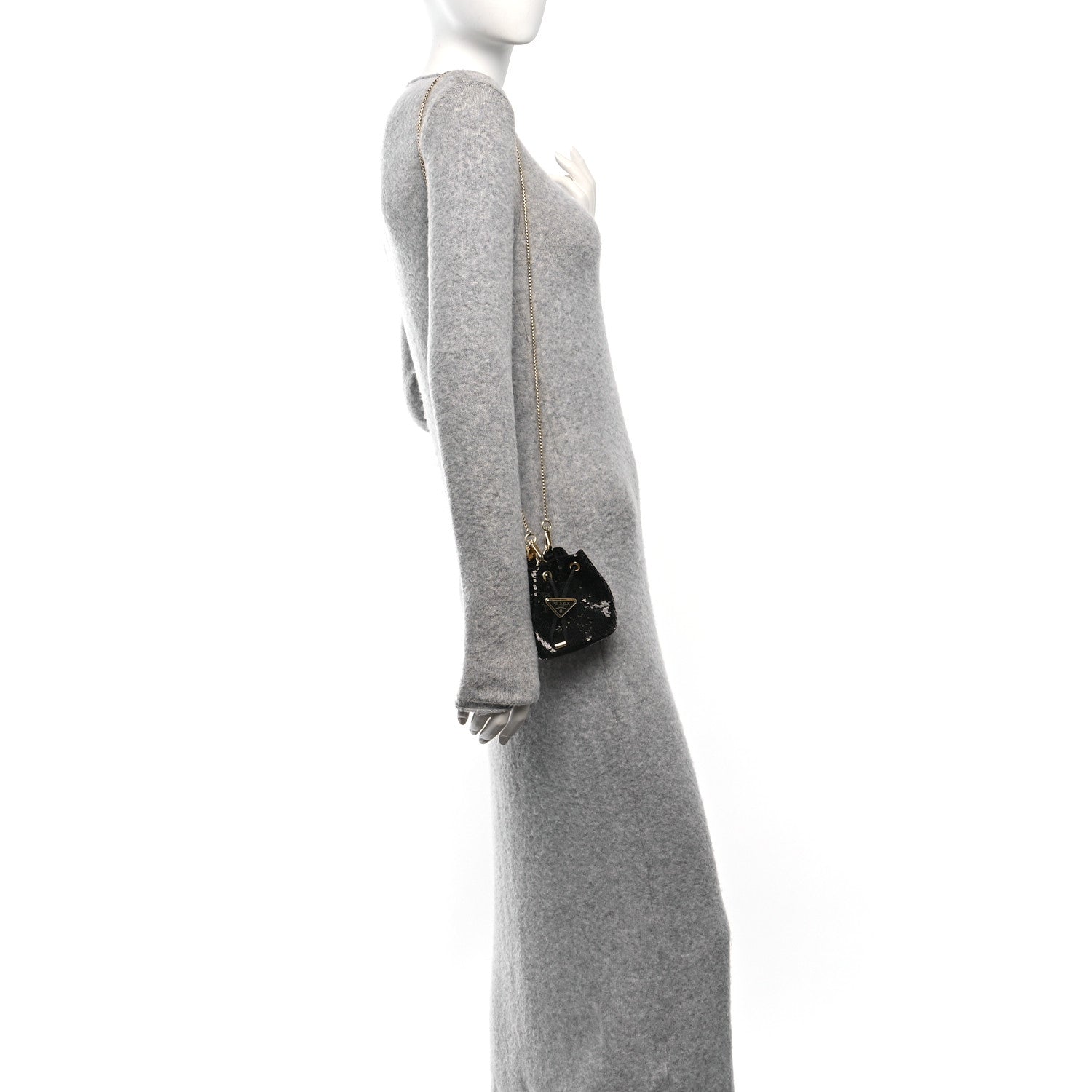 Prada Sequin Satin Triangle Logo Mini Pouch Bag - Black