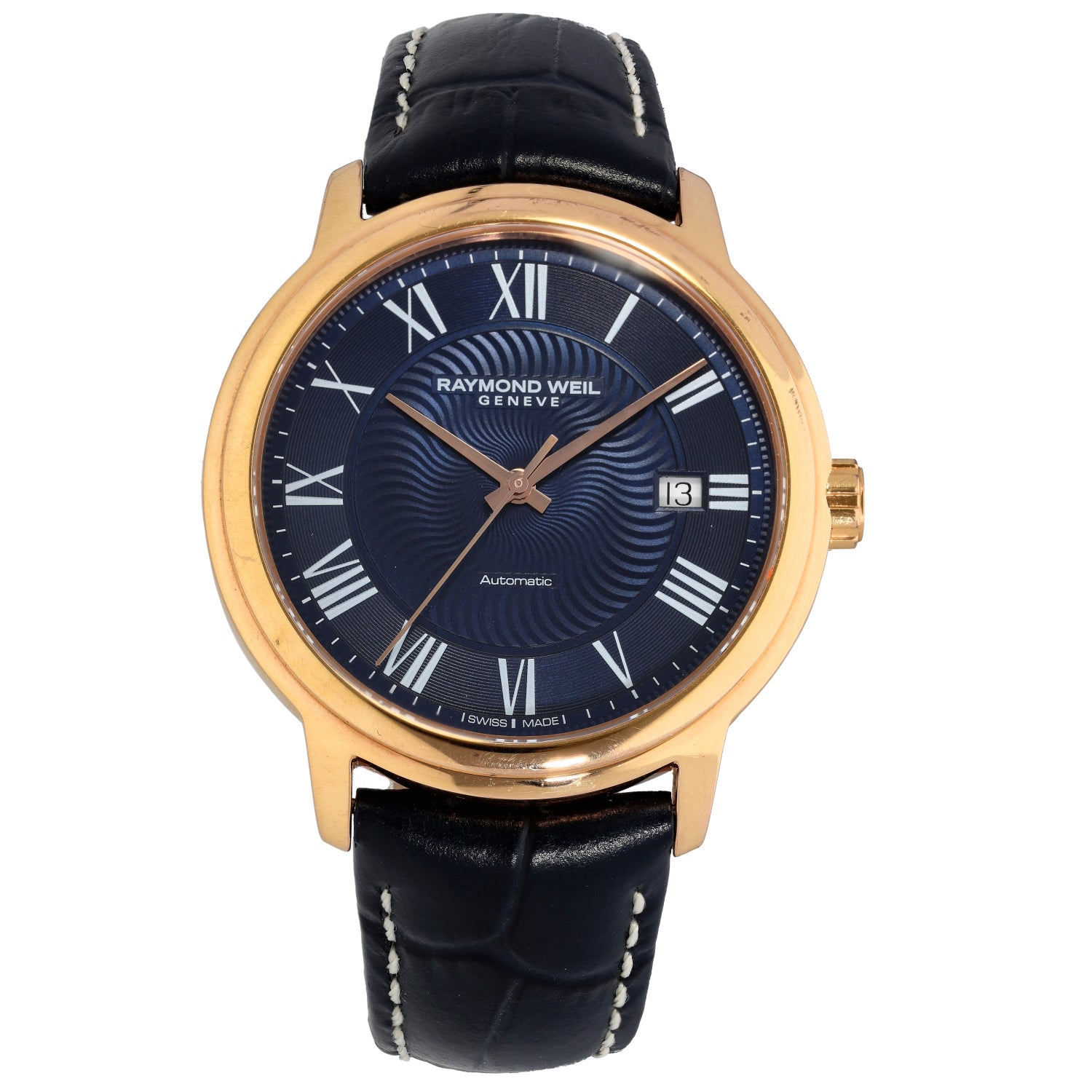 This stunning, pre-owned men's Raymond Weil Maestro watch features an adjustable leather bracelet and a 40mm case. Buying from us is quick and easy, See View-in-Store to find out more on viewing items in one of our 280+ stores nationwide. This watch is also covered by our 12 month warranty and 30 days return policy.