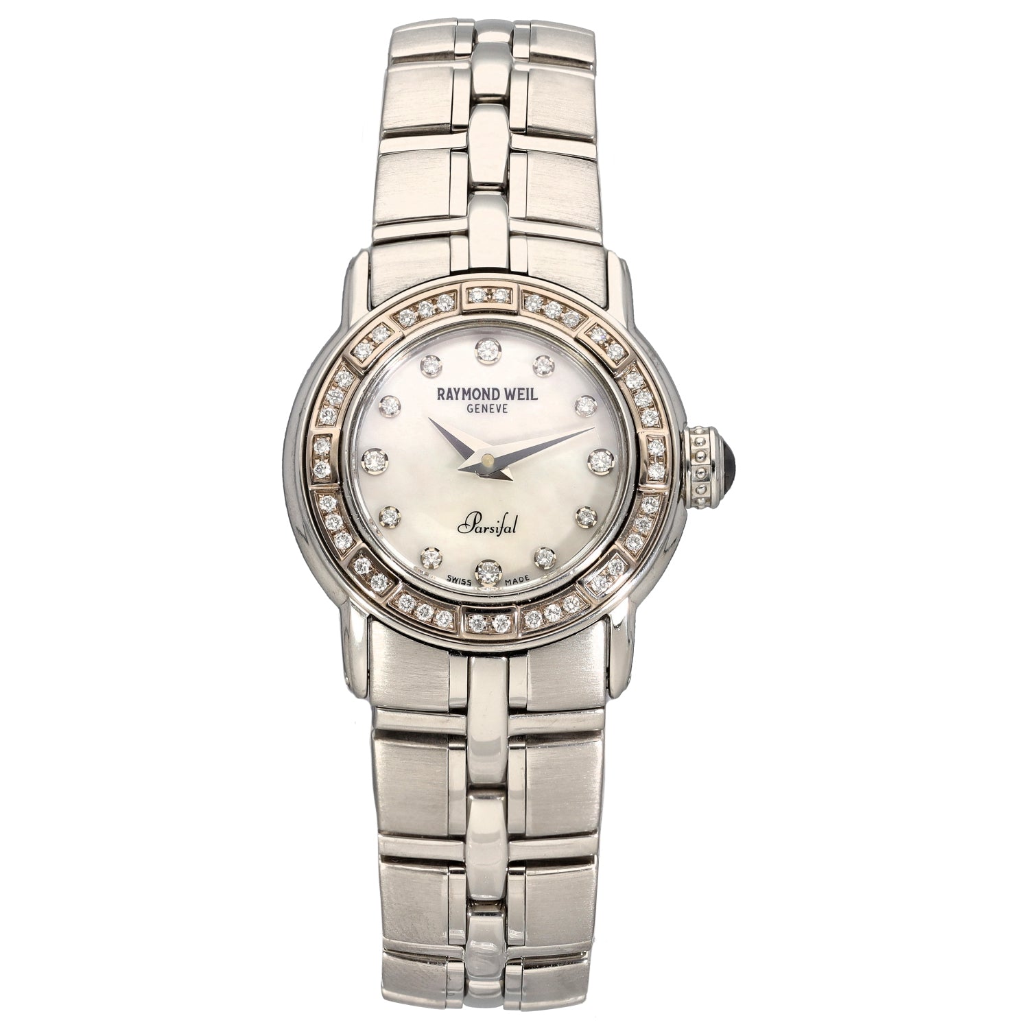This stunning, pre-owned ladies Raymond Weil Parsifal watch features a 17cm stainless steel bracelet and a 22mm case. Buying from us is quick and easy, See View-in-Store to find out more on viewing items in one of our 280+ stores nationwide. This watch is also covered by our 12 month warranty and 30 days return policy.