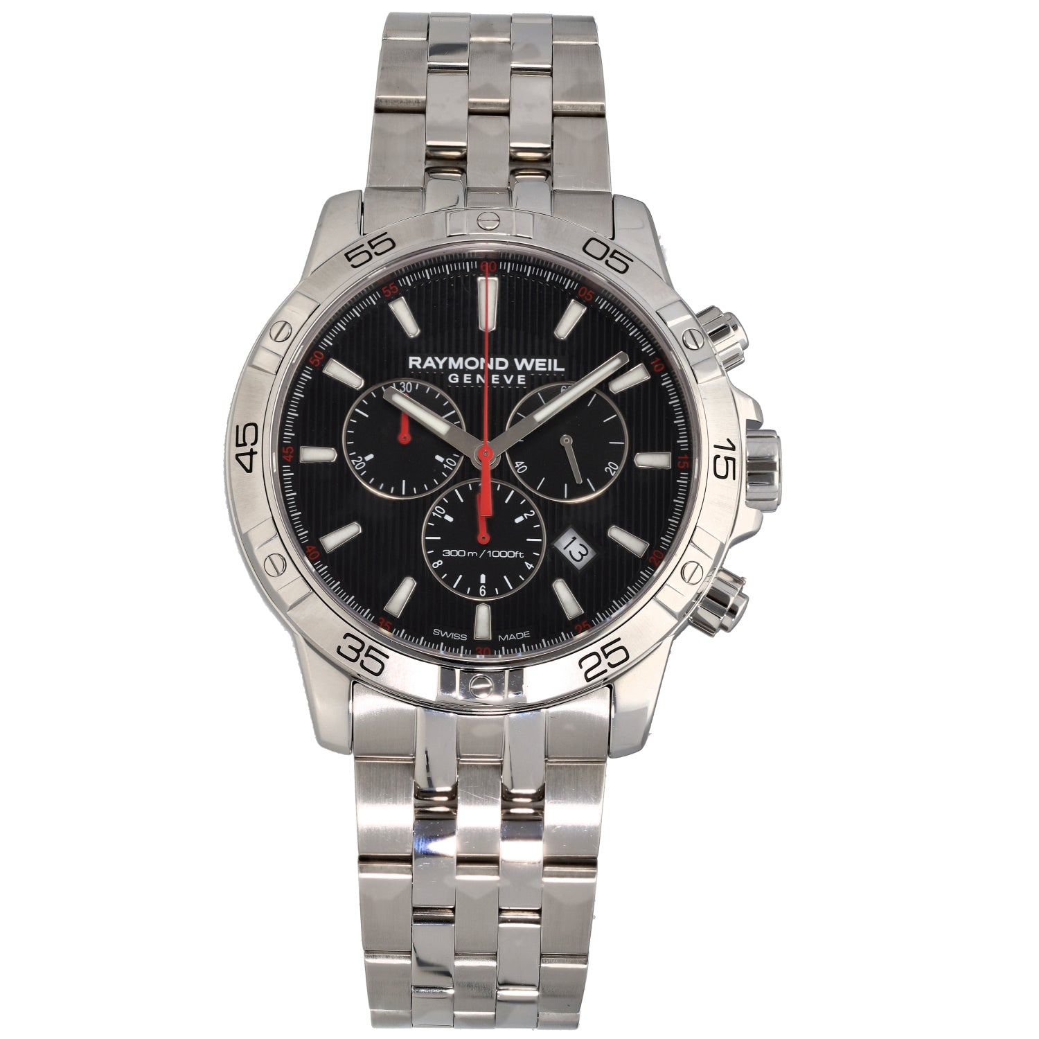 This stunning, pre-owned men's Raymond Weil Tango watch features a 21.5cm stainless steel bracelet and a 43mm case. Buying from us is quick and easy, See View-in-Store to find out more on viewing items in one of our 280+ stores nationwide. This watch is also covered by our 12 month warranty and 30 days return policy.