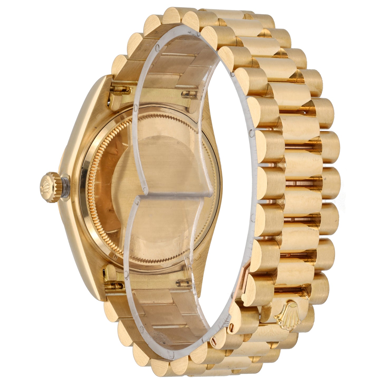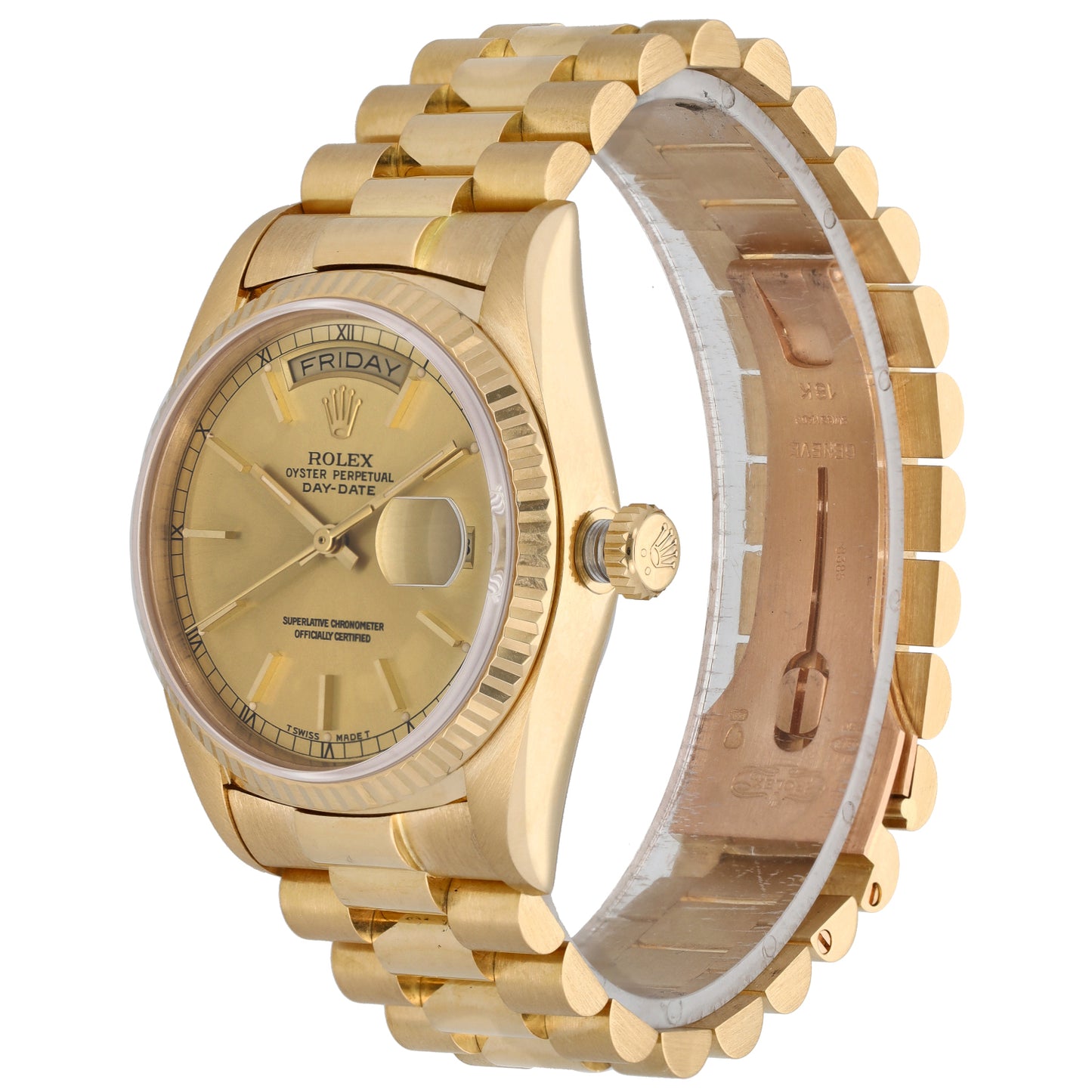 The Rolex Day-Date is an intricate timepiece which was launched by Rolex back in 1956, being a perfect addition to any watch collection. This pre-owned example is finished with a champagne dial inside a 36mm gold case, which is fitted on a 17.5cm gold bracelet. The watch is also...
