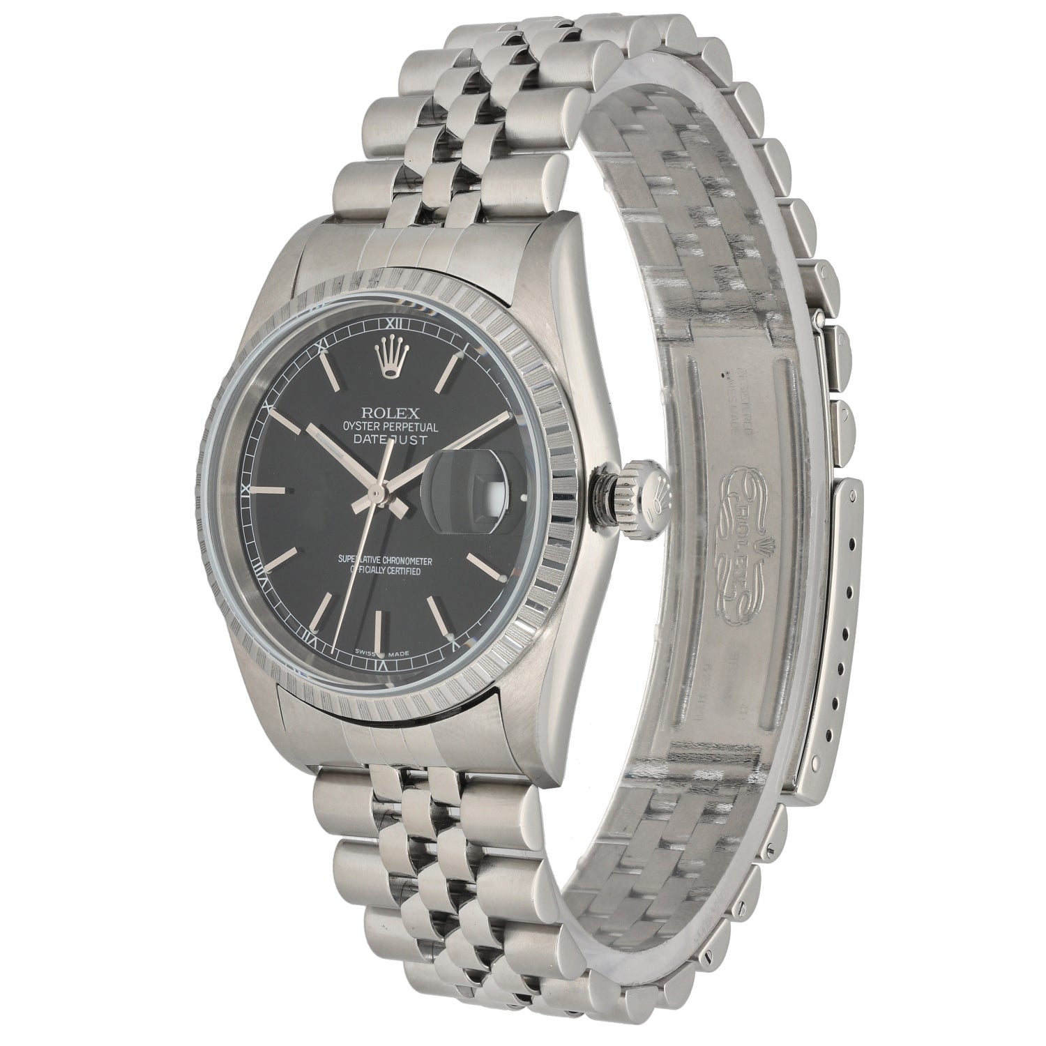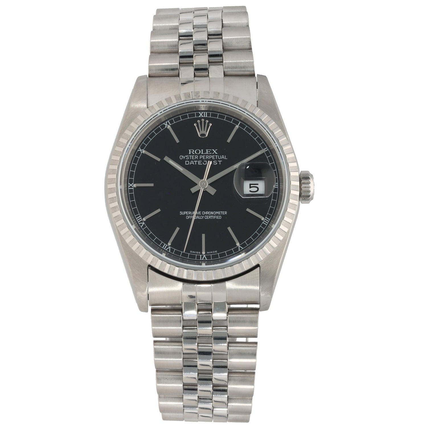 The Rolex Datejust is an intricate timepiece which was launched by Rolex back in 1946, being a perfect addition to any watch collection. This pre-owned example is finished with a black dial inside a 36mm stainless steel case, which is fitted on a 19.5cm stainless steel bracelet. The watch is also powered by an Automatic movement and is not water resistant.