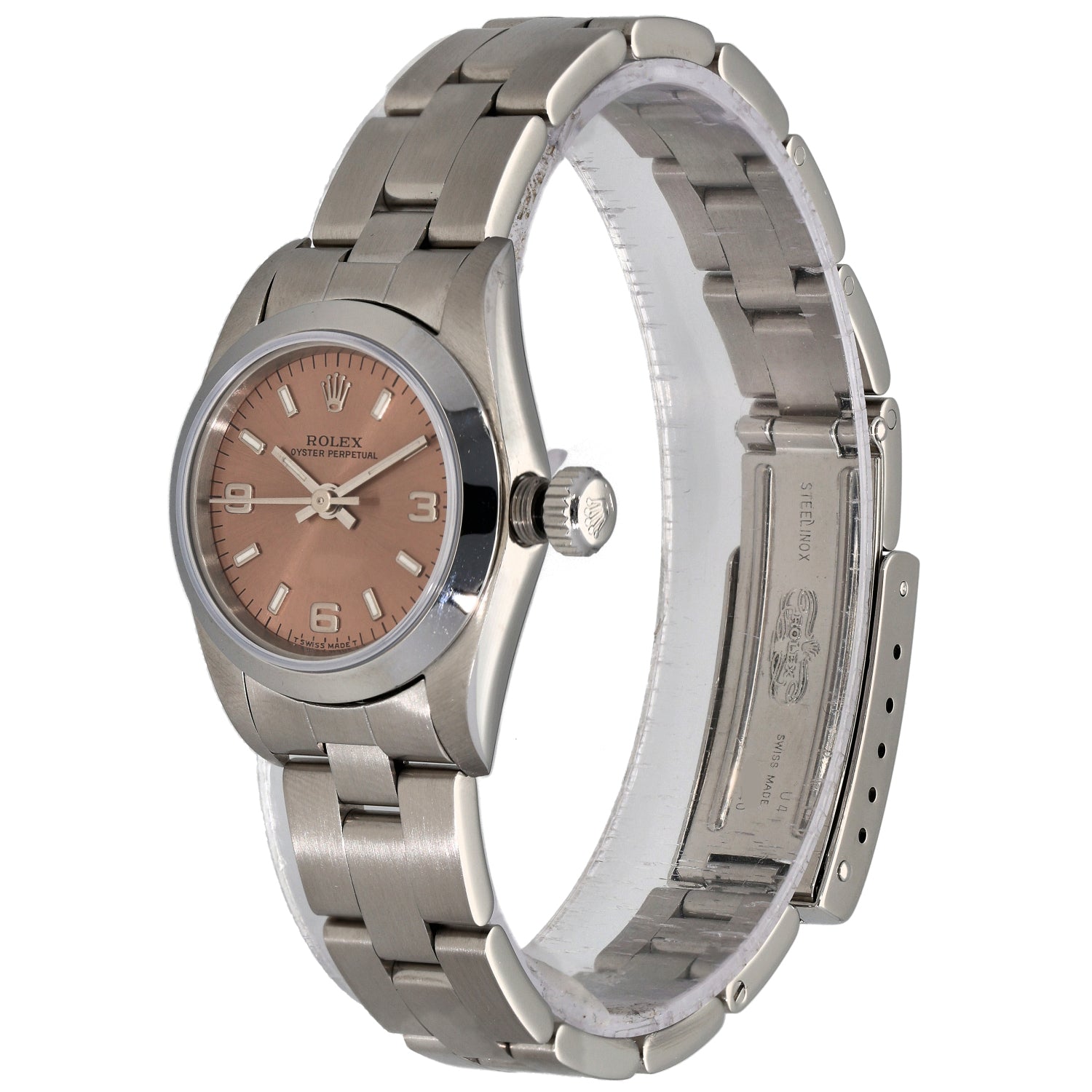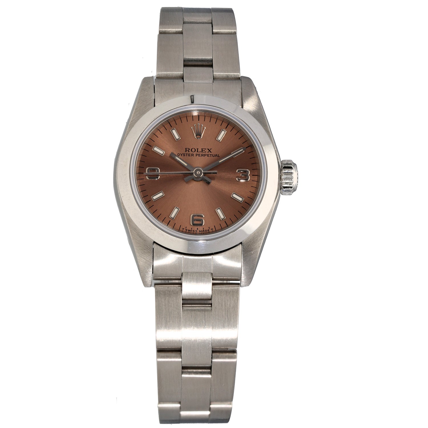 The Rolex Oyster Perpetual is an intricate timepiece which was launched by Rolex back in 1931, being a perfect addition to any watch collection. This pre-owned example is finished with a salmon dial inside a 24mm stainless steel case, which is fitted on a 17cm stainless steel bracelet. The watch is also powered by an Automatic movement and is water resistant up to 100 metres.