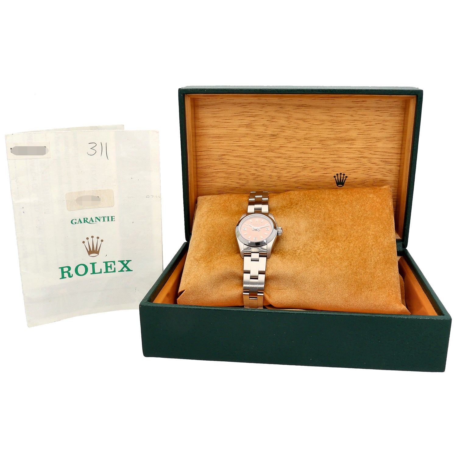 The Rolex Oyster Perpetual is an intricate timepiece which was launched by Rolex back in 1931, being a perfect addition to any watch collection. This pre-owned example is finished with a salmon dial inside a 24mm stainless steel case, which is fitted on a 17cm stainless steel bracelet. The watch...