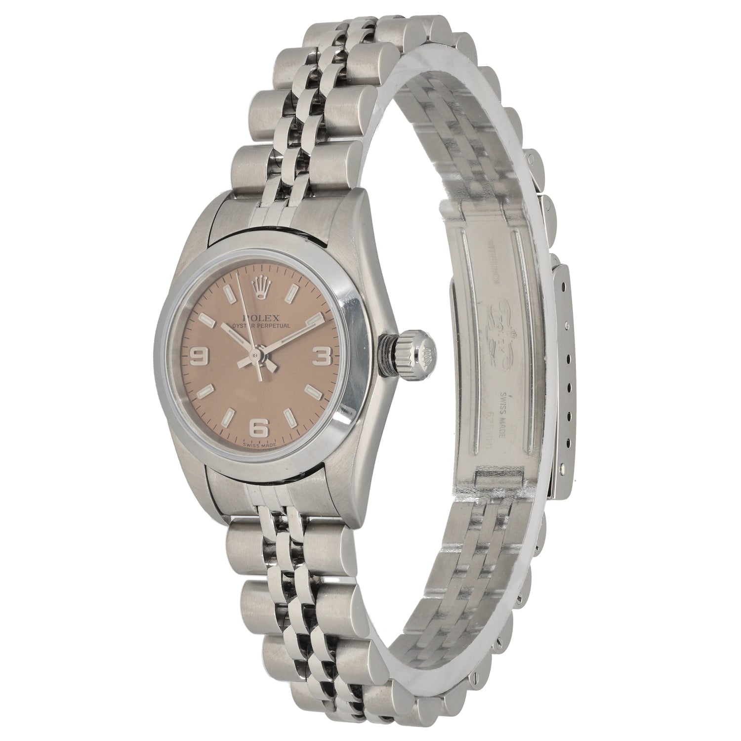 The Rolex Oyster Perpetual is an intricate timepiece which was launched by Rolex back in 1931, being a perfect addition to any watch collection. This pre-owned example is finished with a salmon dial inside a 24mm stainless steel case, which is fitted on a 17.5cm stainless steel bracelet. The...