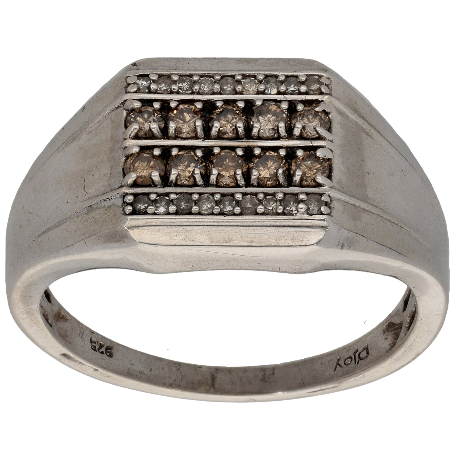 Sterling Silver 0.49ct Diamond Patterned Signet Ring Size Z+3