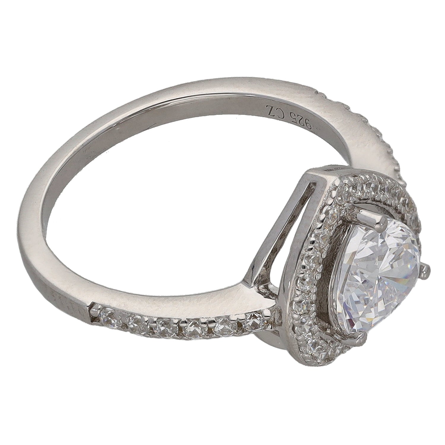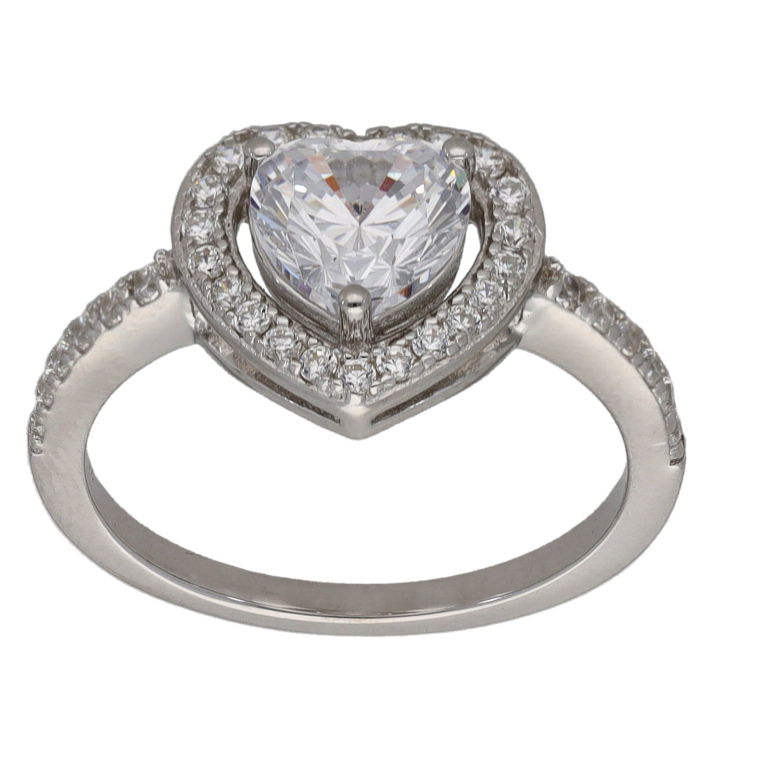 New Sterling Silver Cubic Zirconia Heart Halo Ring