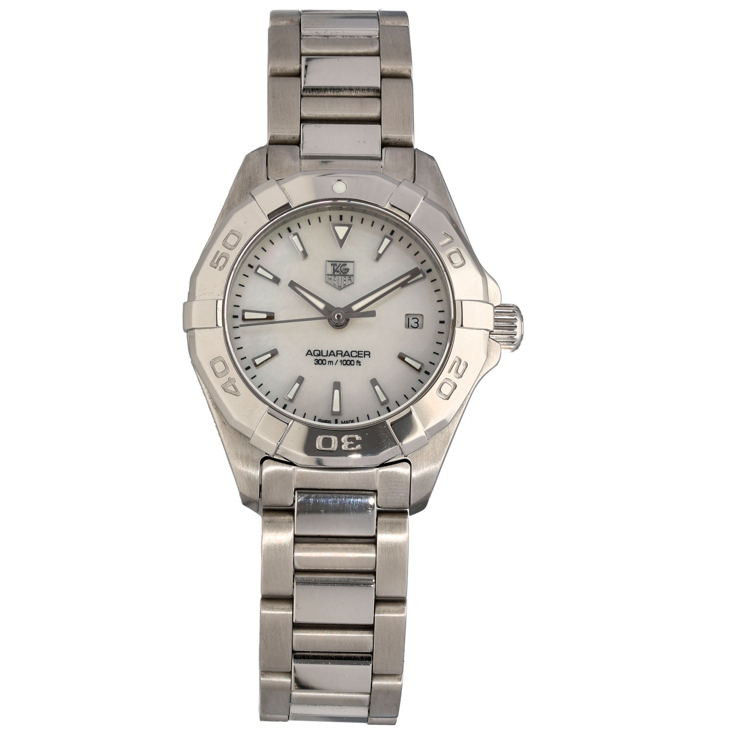 The Tag Heuer Aquaracer is an intricate timepiece which was launched by Tag Heuer back in 2004, being a perfect addition to any watch collection. This pre-owned example is finished with a white Mother of Pearl dial inside a 27mm stainless steel case, which is fitted on a 17.5cm stainless steel bracelet. The watch is also powered by a Quartz movement and is water resistant up to 300 metres.