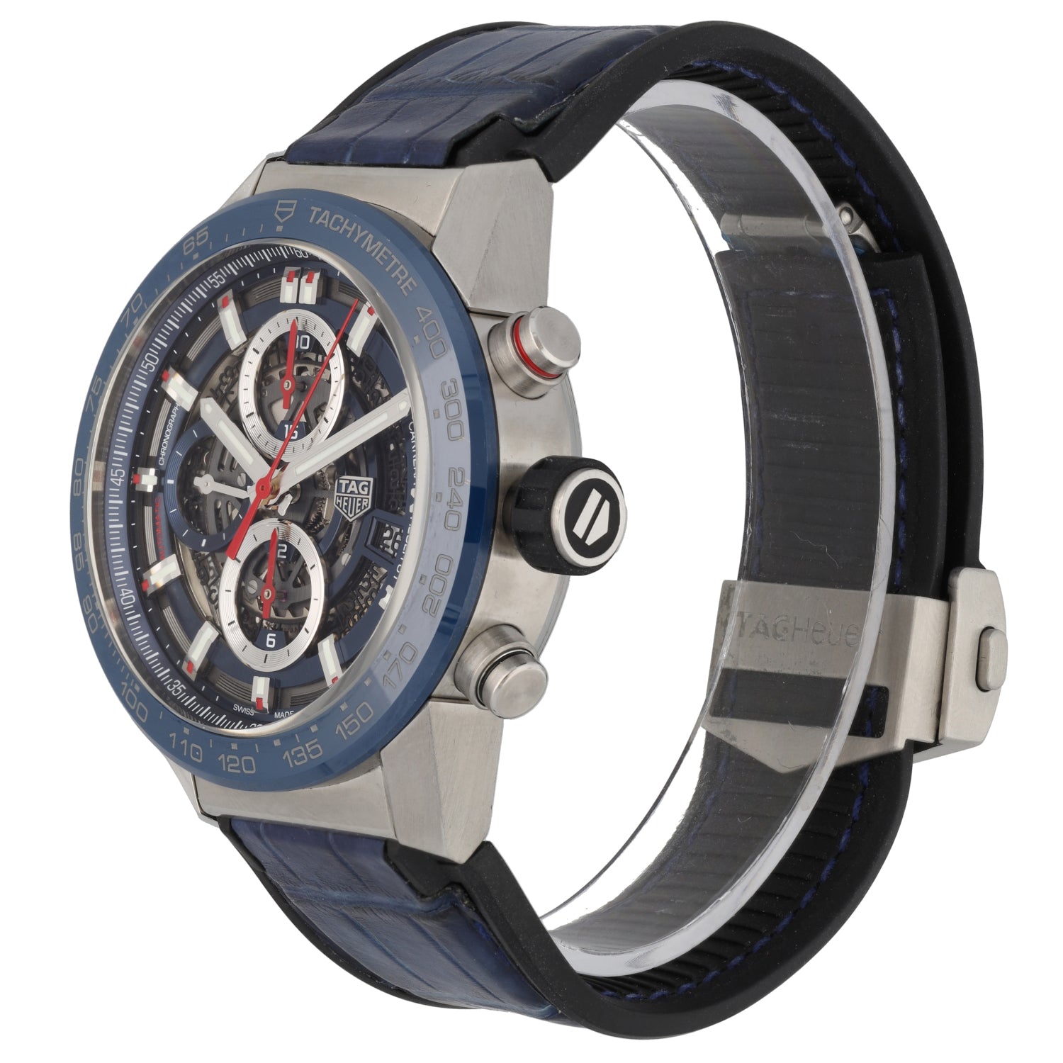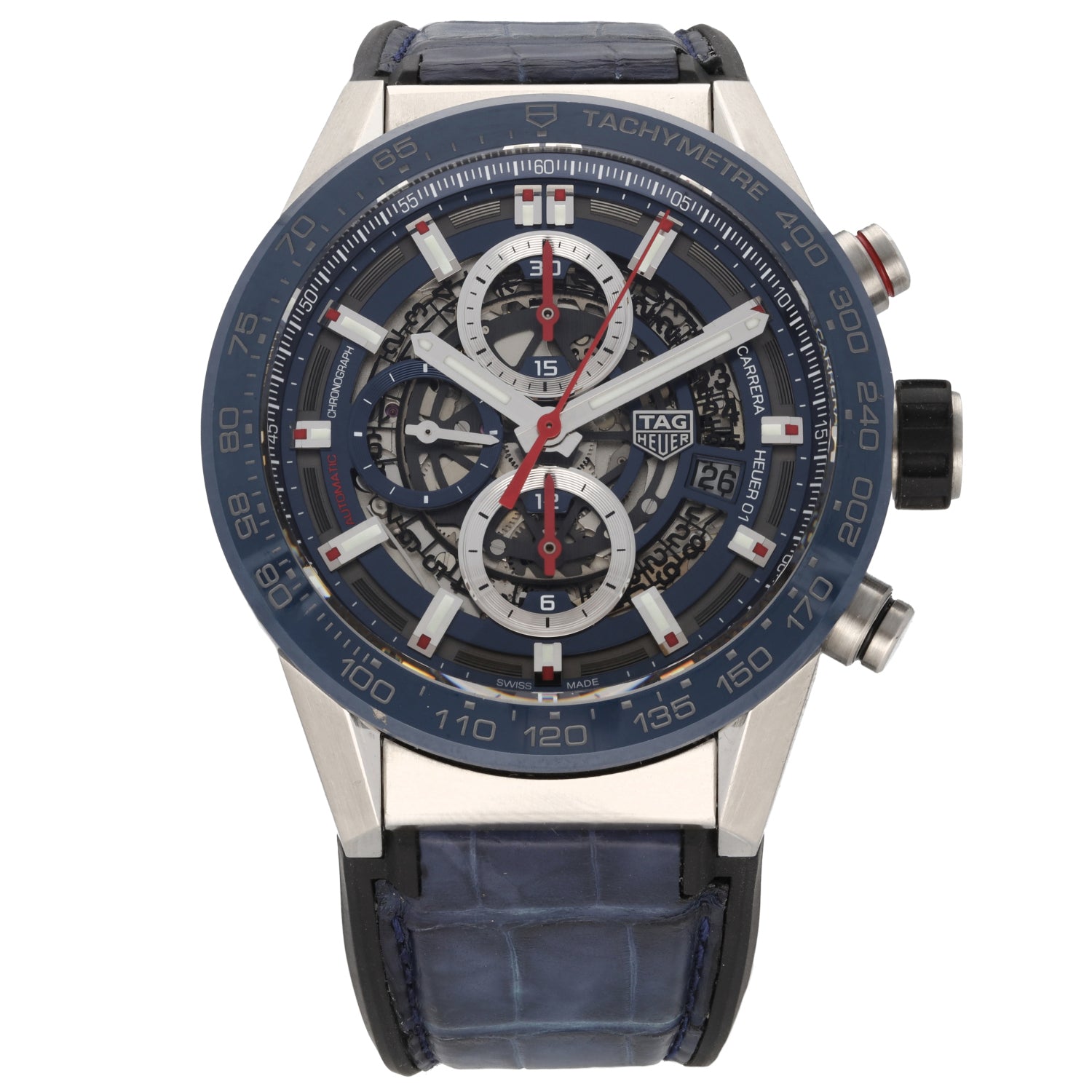 The Tag Heuer Carrera is an intricate timepiece which was launched by Tag Heuer back in 1963, being a perfect addition to any watch collection. This pre-owned example is finished with a skeleton dial inside a 43mm stainless steel case, which is fitted on an adjustable leather bracelet....