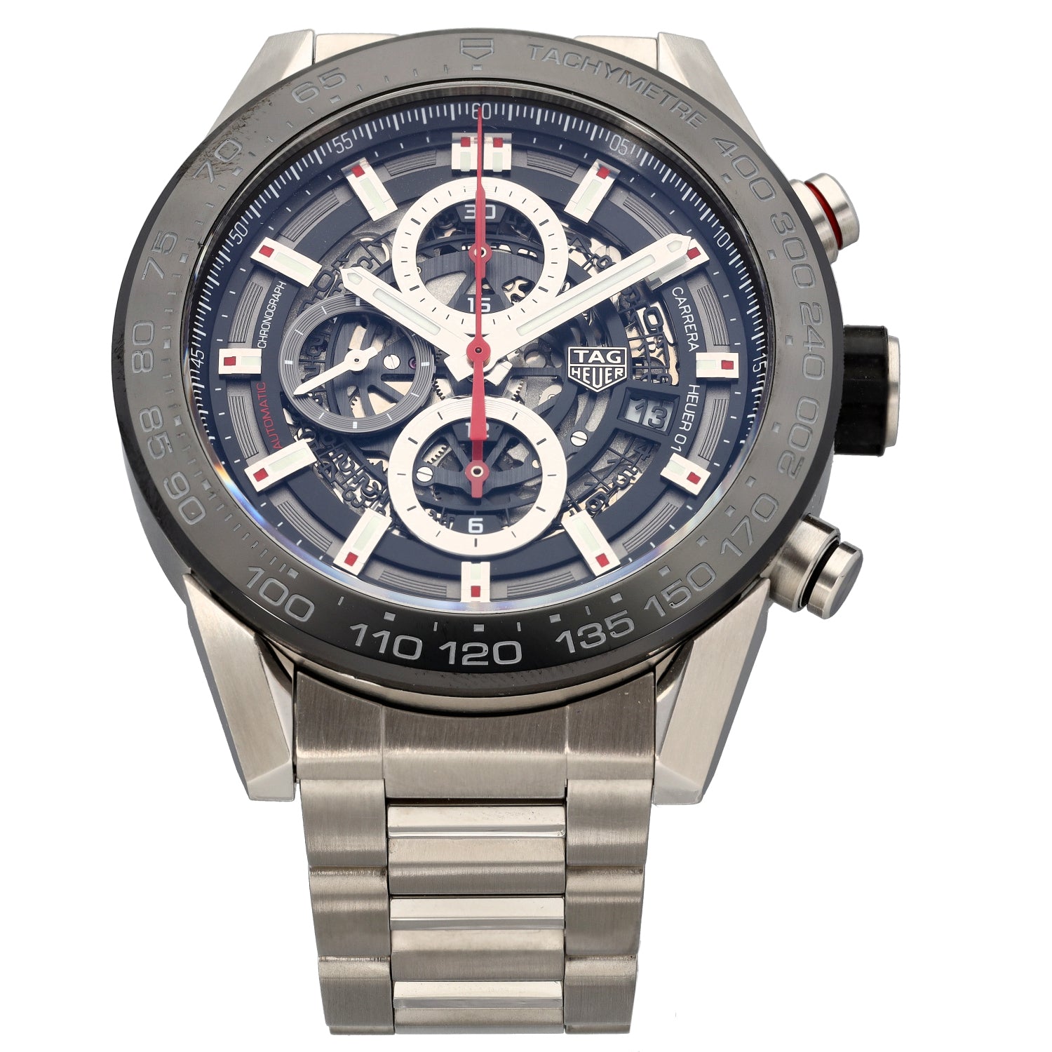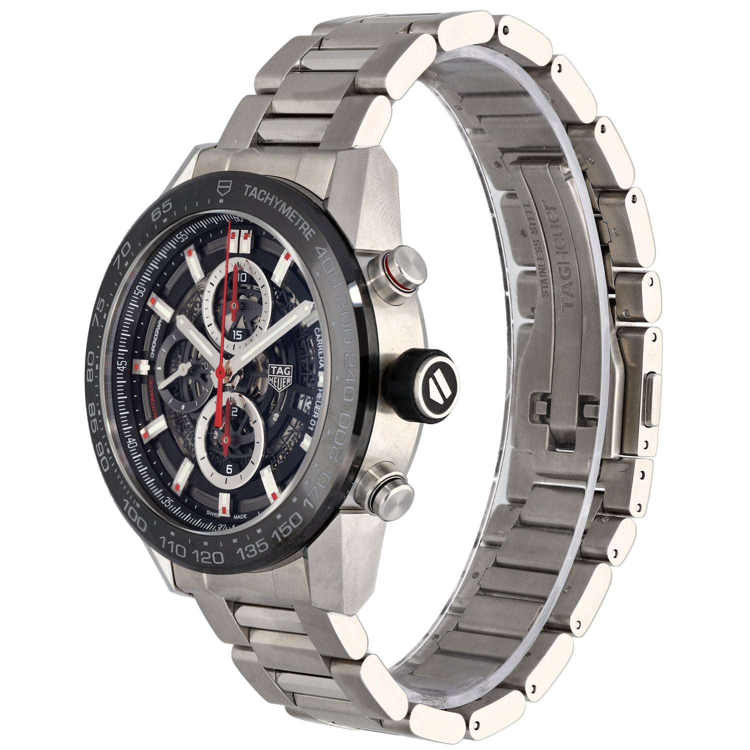 The Tag Heuer Carrera is an intricate timepiece which was launched by Tag Heuer back in 1963, being a perfect addition to any watch collection. This pre-owned example is finished with a skeleton dial inside a 45mm stainless steel case, which is fitted on a 20.5cm stainless steel bracelet....