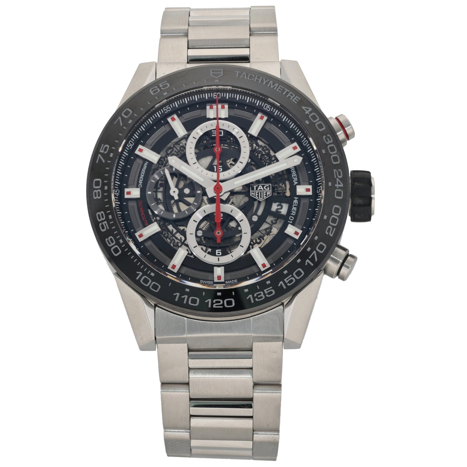 The Tag Heuer Carrera is an intricate timepiece which was launched by Tag Heuer back in 1963, being a perfect addition to any watch collection. This pre-owned example is finished with a skeleton dial inside a 46mm stainless steel case, which is fitted on a 20cm stainless...