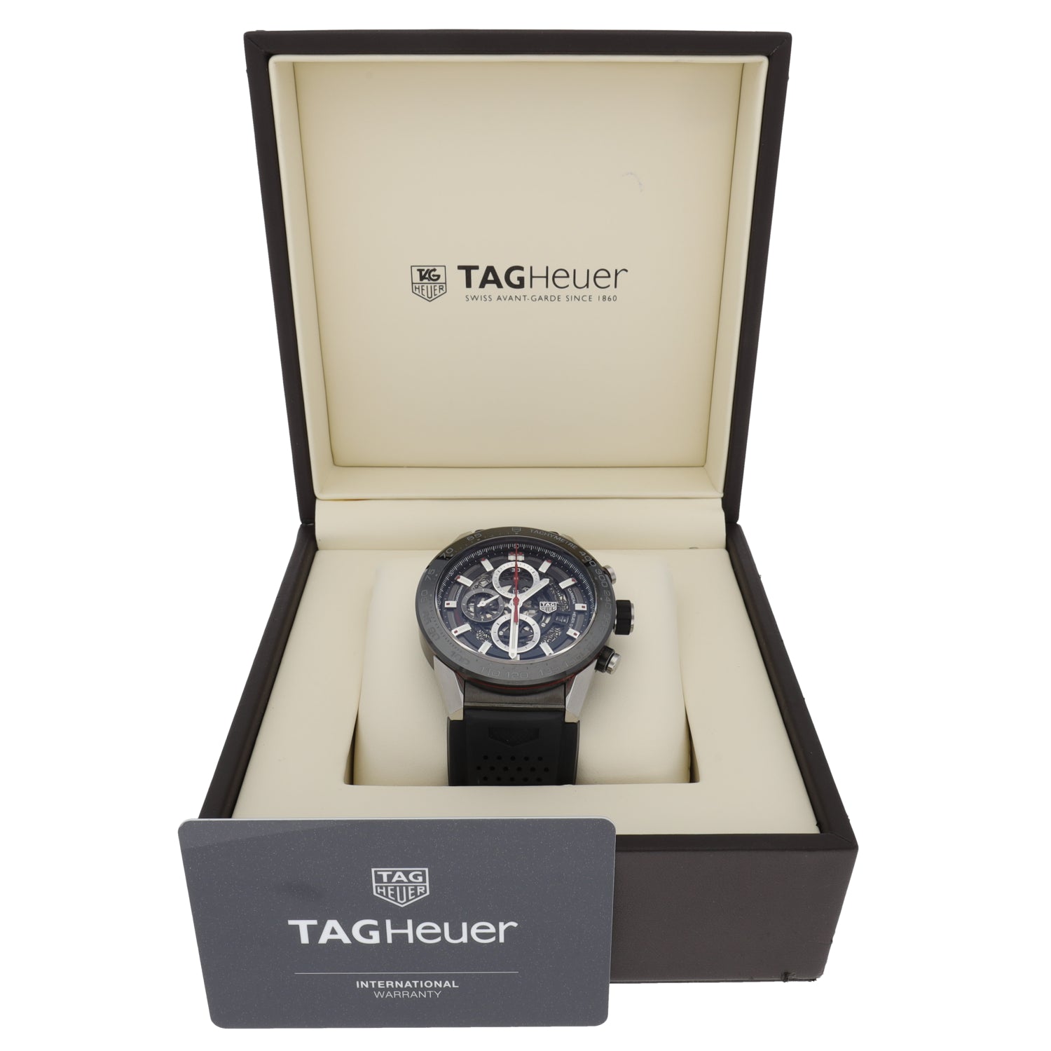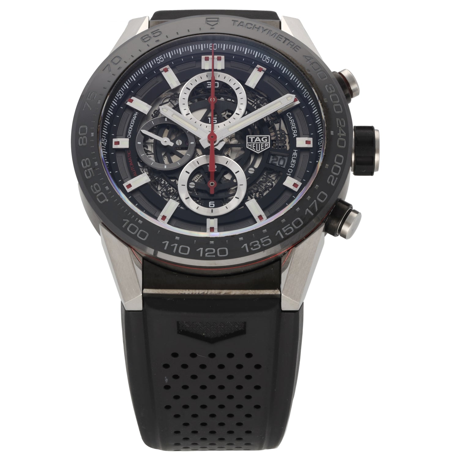 The Tag Heuer Carrera is an intricate timepiece which was launched by Tag Heuer back in 1963, being a perfect addition to any watch collection. This pre-owned example is finished with a skeleton dial inside a 44mm PVD stainless steel case, which is fitted on an adjustable rubber...
