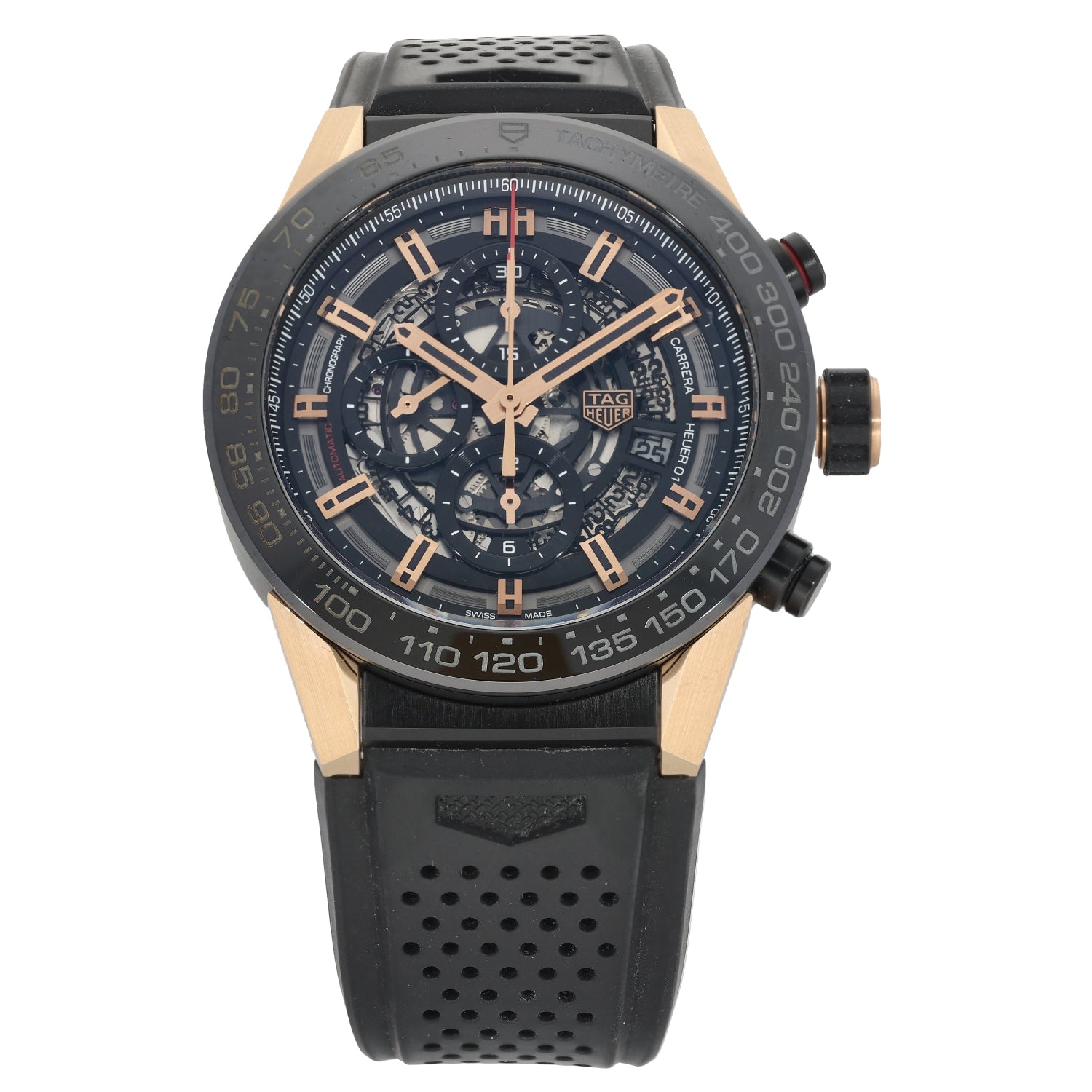 The Tag Heuer Carrera is an intricate timepiece which was launched by Tag Heuer back in 1963, being a perfect addition to any watch collection. This pre-owned example is finished with a skeleton dial inside a 45mm bi-colour case, which is fitted on an adjustable rubber bracelet. The watch...