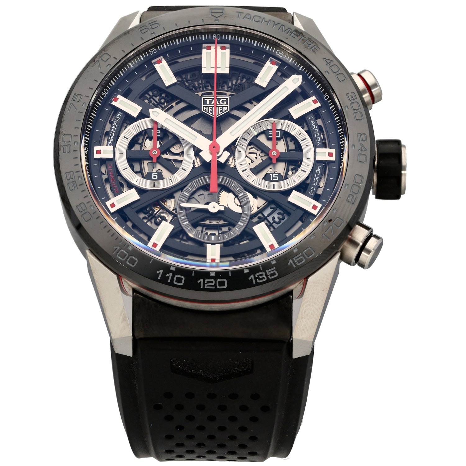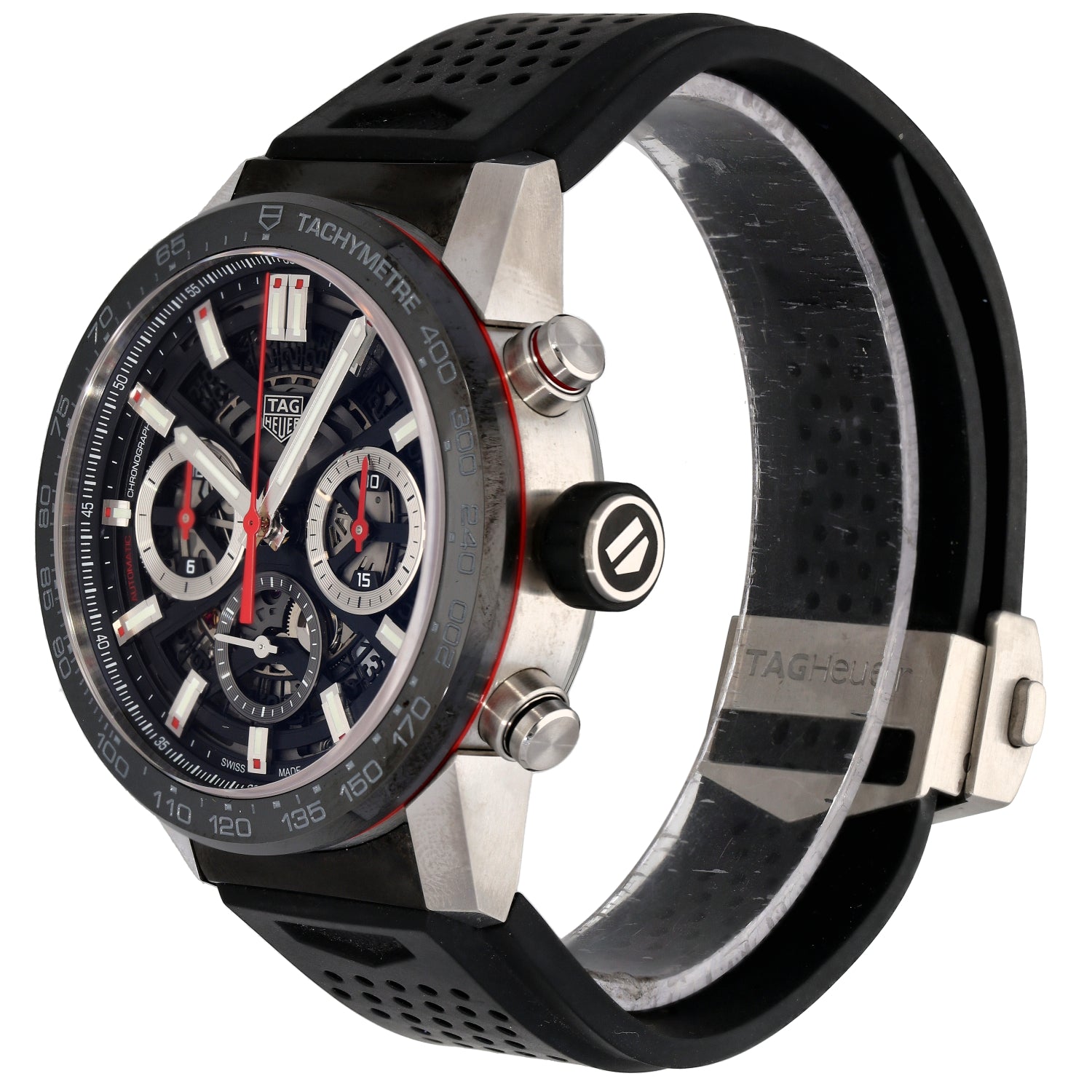 The Tag Heuer Carrera is an intricate timepiece which was launched by Tag Heuer back in 1963, being a perfect addition to any watch collection. This pre-owned example is finished with a skeleton dial inside a 43mm stainless steel case, which is fitted on an adjustable rubber bracelet....