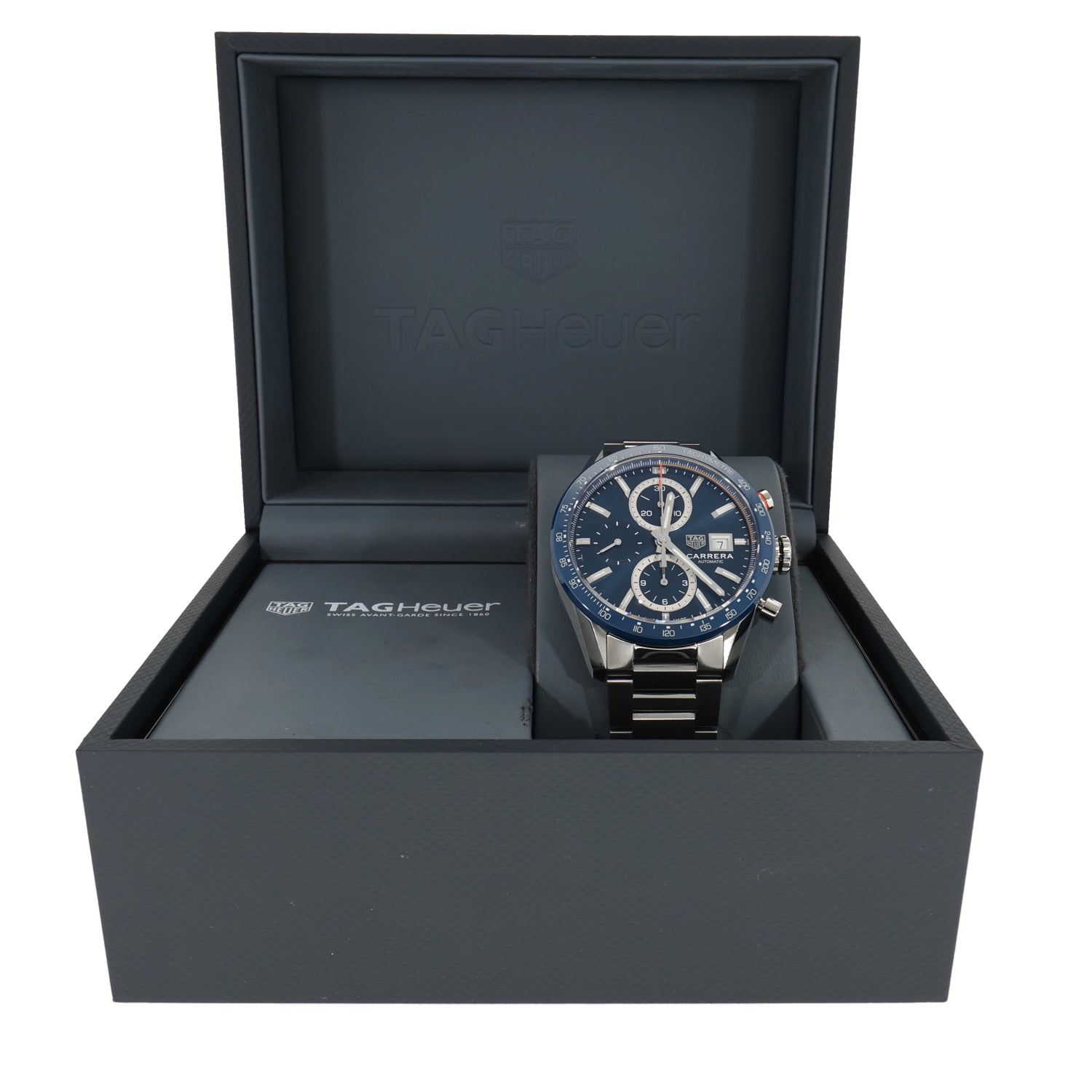 The Tag Heuer Carrera is an intricate timepiece which was launched by Tag Heuer back in 1963, being a perfect addition to any watch collection. This pre-owned example is finished with a blue dial inside a 41mm stainless steel case, which is fitted on a 20cm stainless steel bracelet....