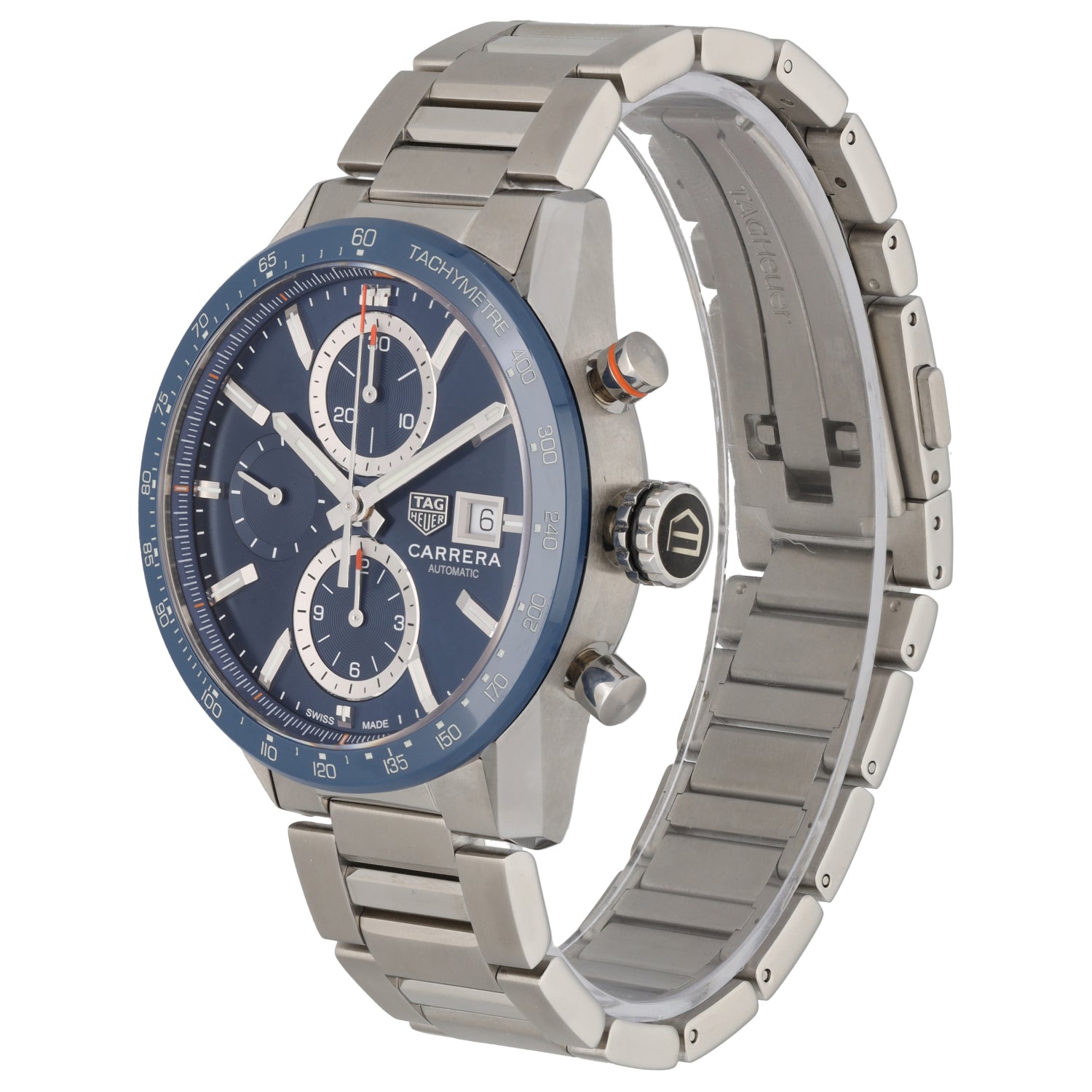 The Tag Heuer Carrera is an intricate timepiece which was launched by Tag Heuer back in 1963, being a perfect addition to any watch collection. This pre-owned example is finished with a blue dial inside a 41mm stainless steel case, which is fitted on a 19cm stainless steel bracelet. The watch is also powered by an Automatic movement and is water resistant up to 100 metres.
