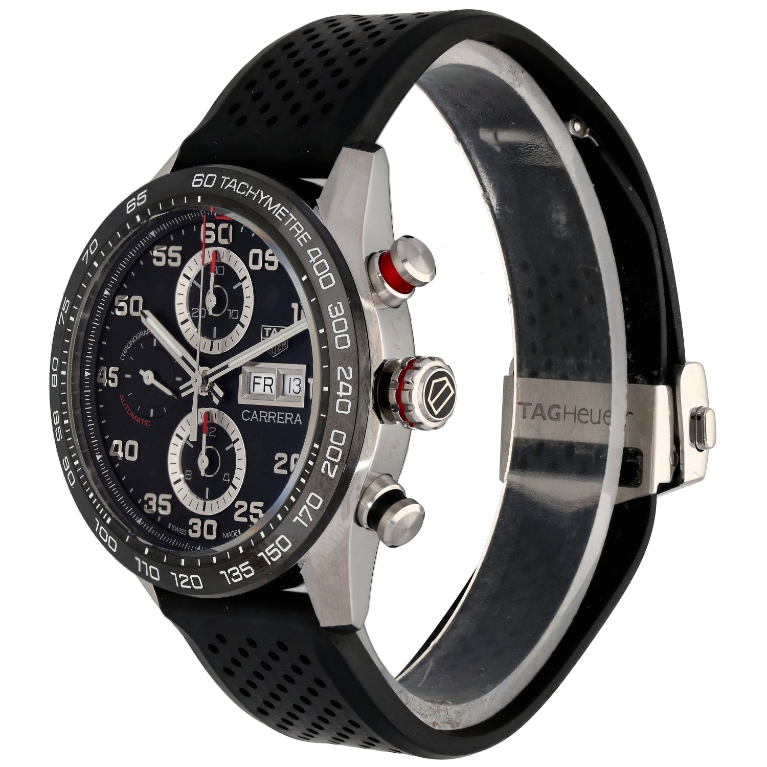The Tag Heuer Carrera is an intricate timepiece which was launched by Tag Heuer back in 1963, being a perfect addition to any watch collection. This pre-owned example is finished with a black dial inside a 44mm stainless steel case, which is fitted on an adjustable rubber bracelet. The watch is also powered by an Automatic movement and is water resistant up to 100 metres.