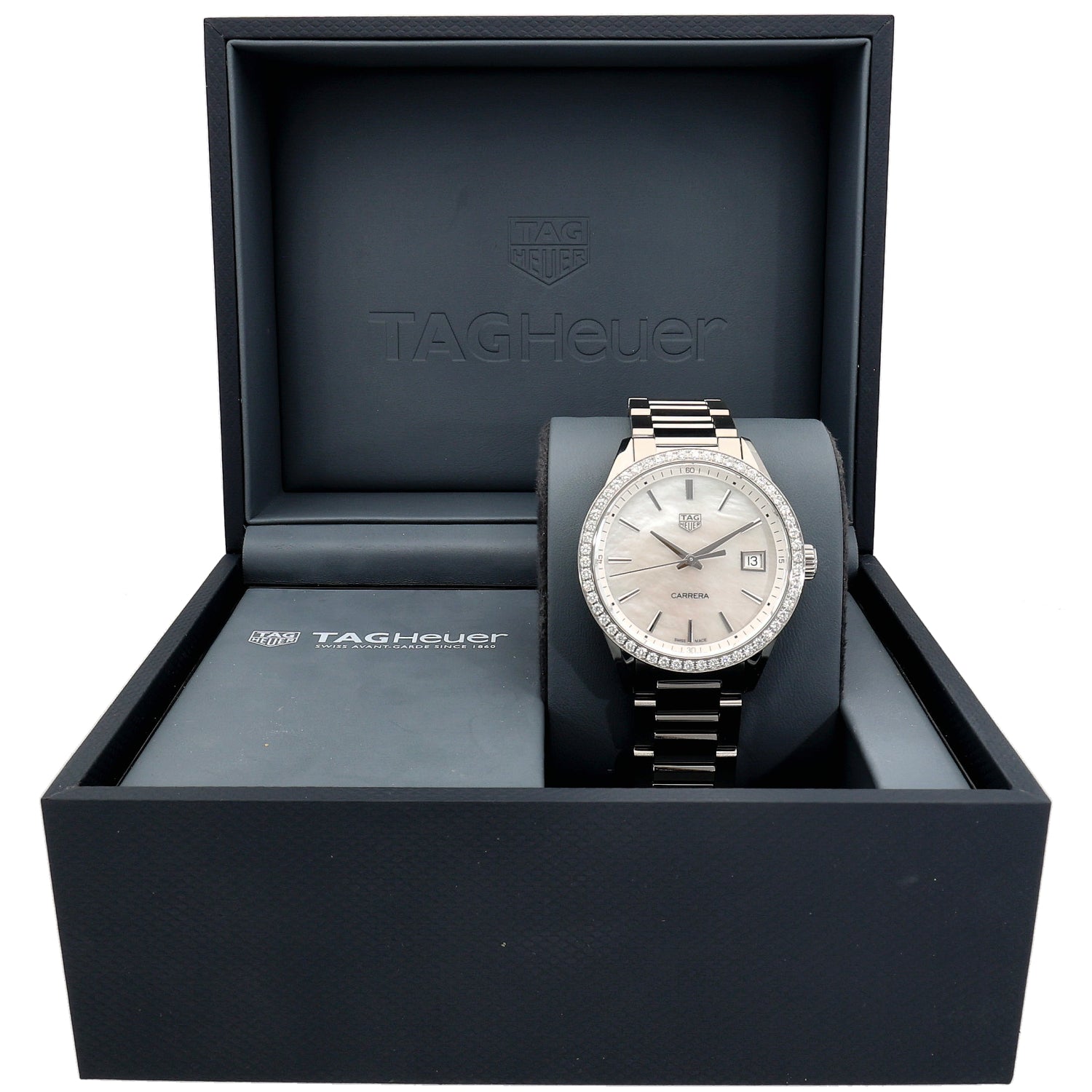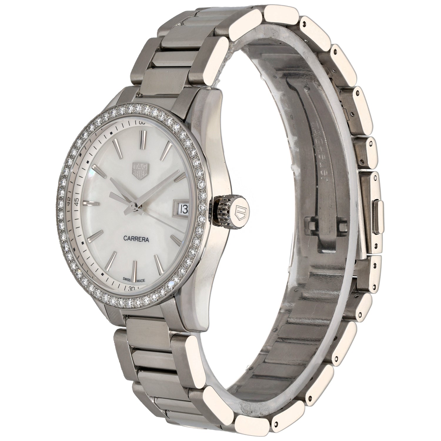 The Tag Heuer Carrera is an intricate timepiece which was launched by Tag Heuer back in 1963, being a perfect addition to any watch collection. This pre-owned example is finished with a white Mother of Pearl dial inside a 36mm stainless steel case, which is fitted on a 19cm stainless steel bracelet. The watch is also powered by a Quartz movement and is water resistant up to 100 metres.