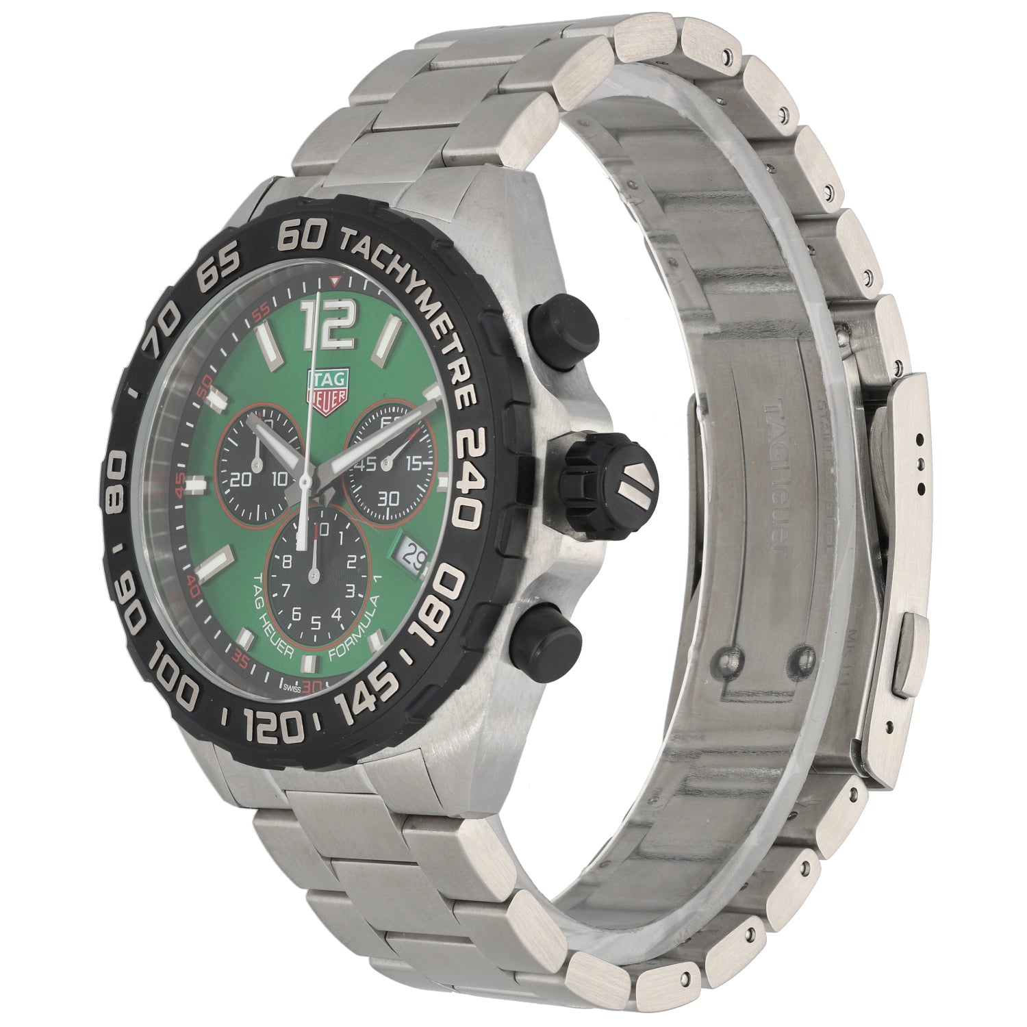 The Tag Heuer Formula 1 is an intricate timepiece which was launched by Tag Heuer back in 1986, being a perfect addition to any watch collection. This pre-owned example is finished with a green dial inside a 43mm stainless steel case, which is fitted on a 19cm stainless steel bracelet. The watch is also powered by a Quartz movement and is water resistant up to 50 metres.