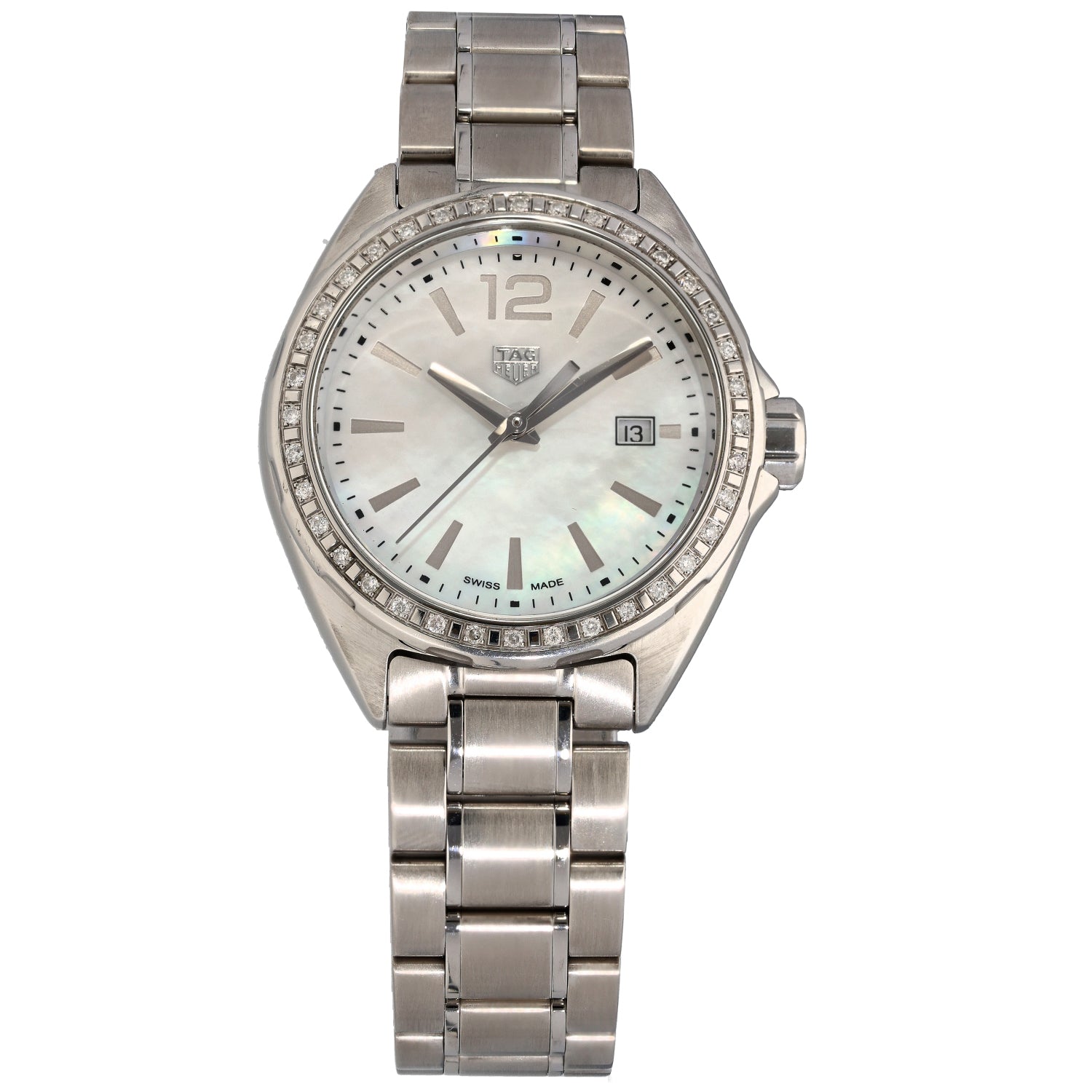 The Tag Heuer Formula 1 is an intricate timepiece which was launched by Tag Heuer back in 1986, being a perfect addition to any watch collection. This pre-owned example is finished with a white Mother of Pearl dial inside a 32mm stainless steel case, which is fitted on an 18cm stainless steel bracelet. The watch is also powered by a Quartz movement and is water resistant up to 100 metres.