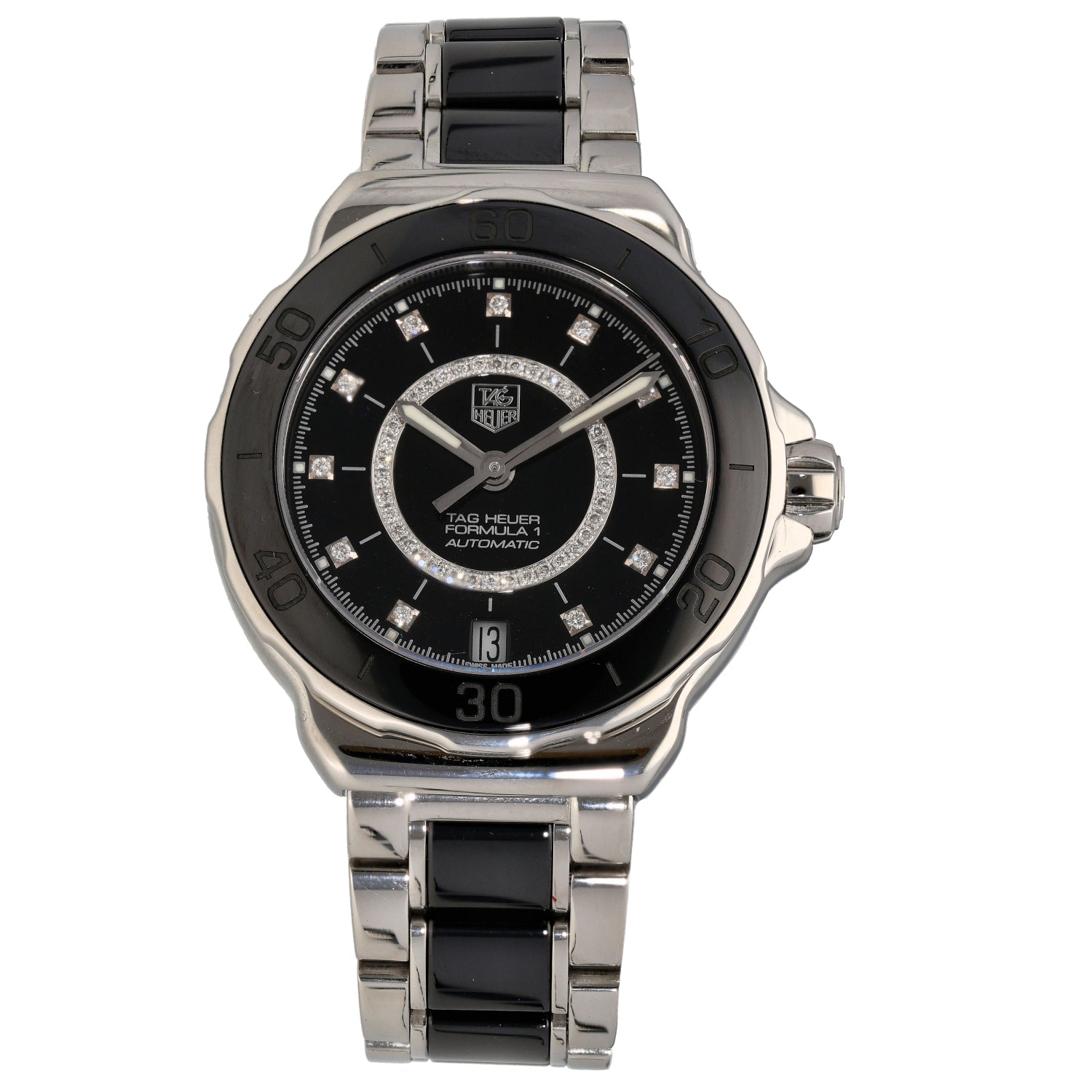 The Tag Heuer Formula 1 is an intricate timepiece which was launched by Tag Heuer back in 1986, being a perfect addition to any watch collection. This pre-owned example is finished with a black dial inside a 37mm bi-colour case, which is fitted on a 15.5cm stainless steel and ceramic bracelet. The watch is also powered by an Automatic movement and is water resistant up to 200 metres.