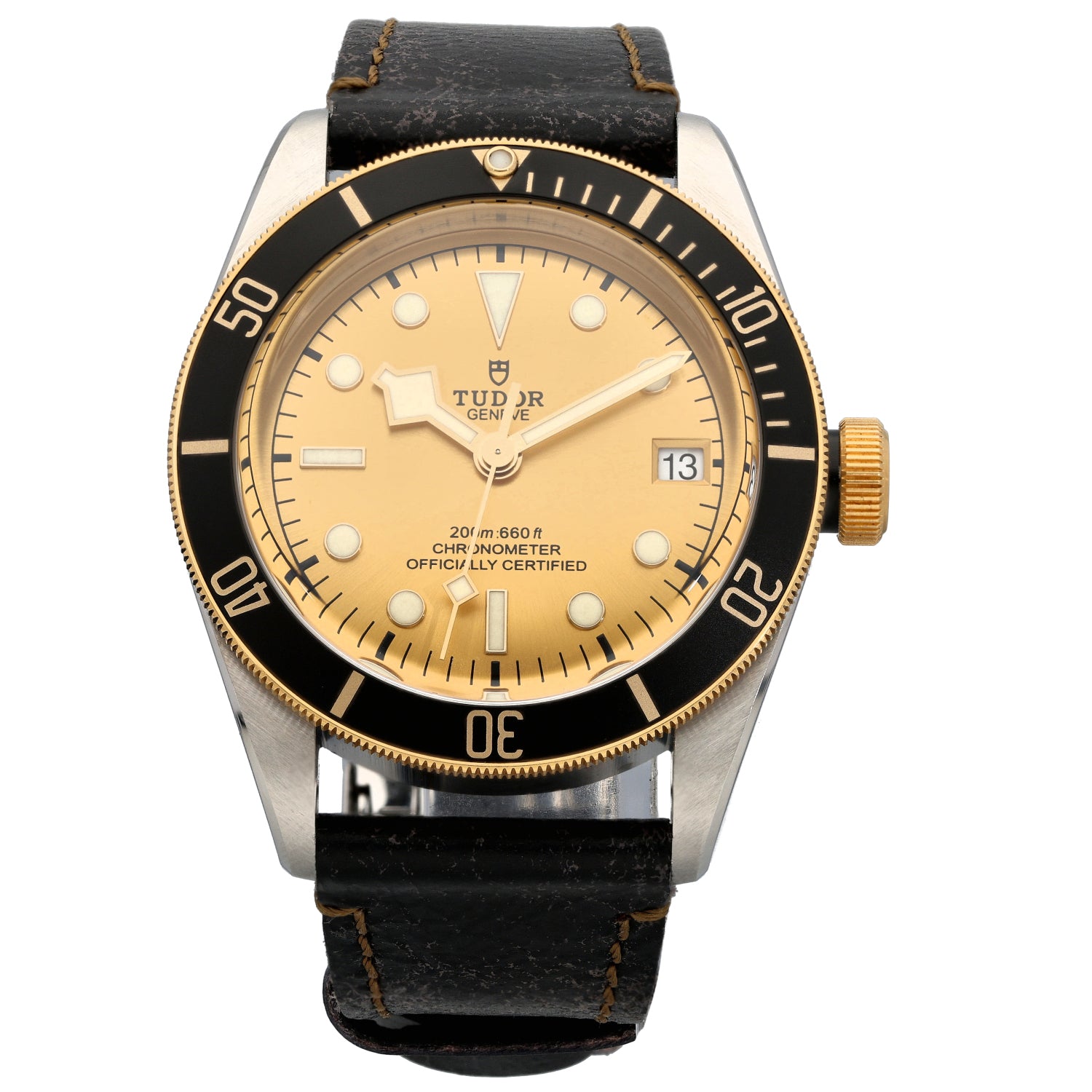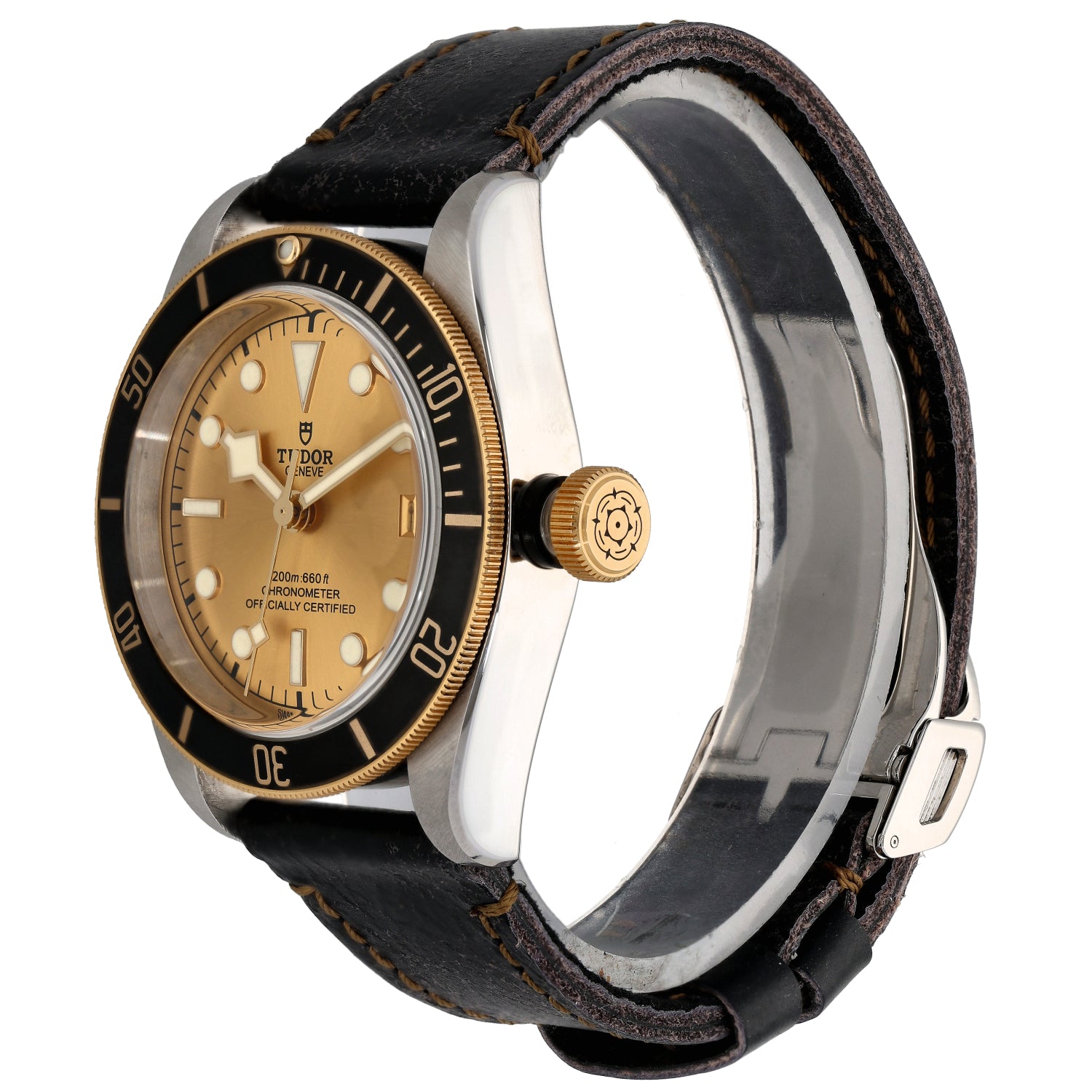 The Tudor Black Bay is an intricate timepiece which was launched by Tudor back in 2012, being a perfect addition to any watch collection. This pre-owned example is finished with a champagne dial inside a 41mm stainless steel case, which is fitted on an adjustable leather bracelet. The watch is also powered by an Automatic movement and is water resistant up to 200 metres.