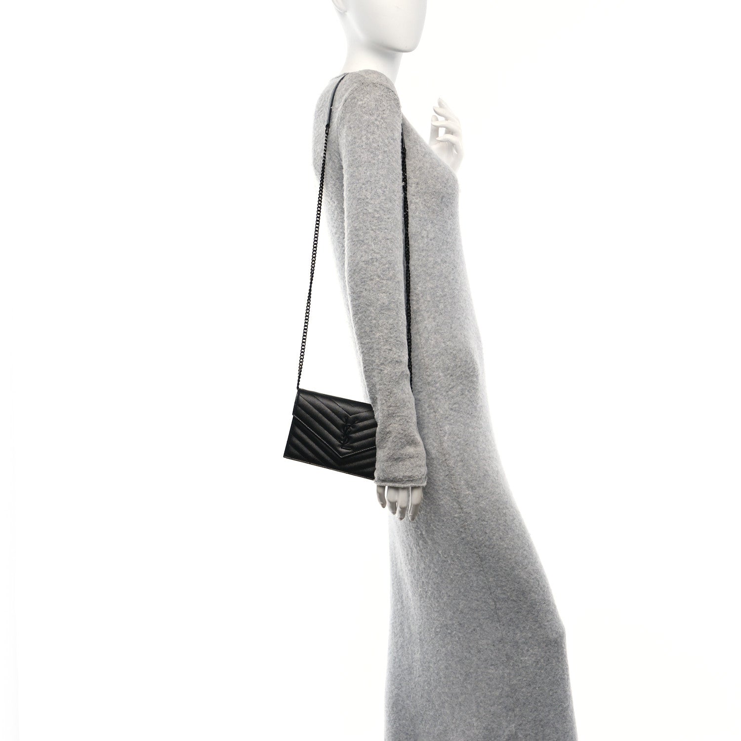 Yves Saint Laurent Grain De Poudre Matelasse Chevron Envelope Bag - Black